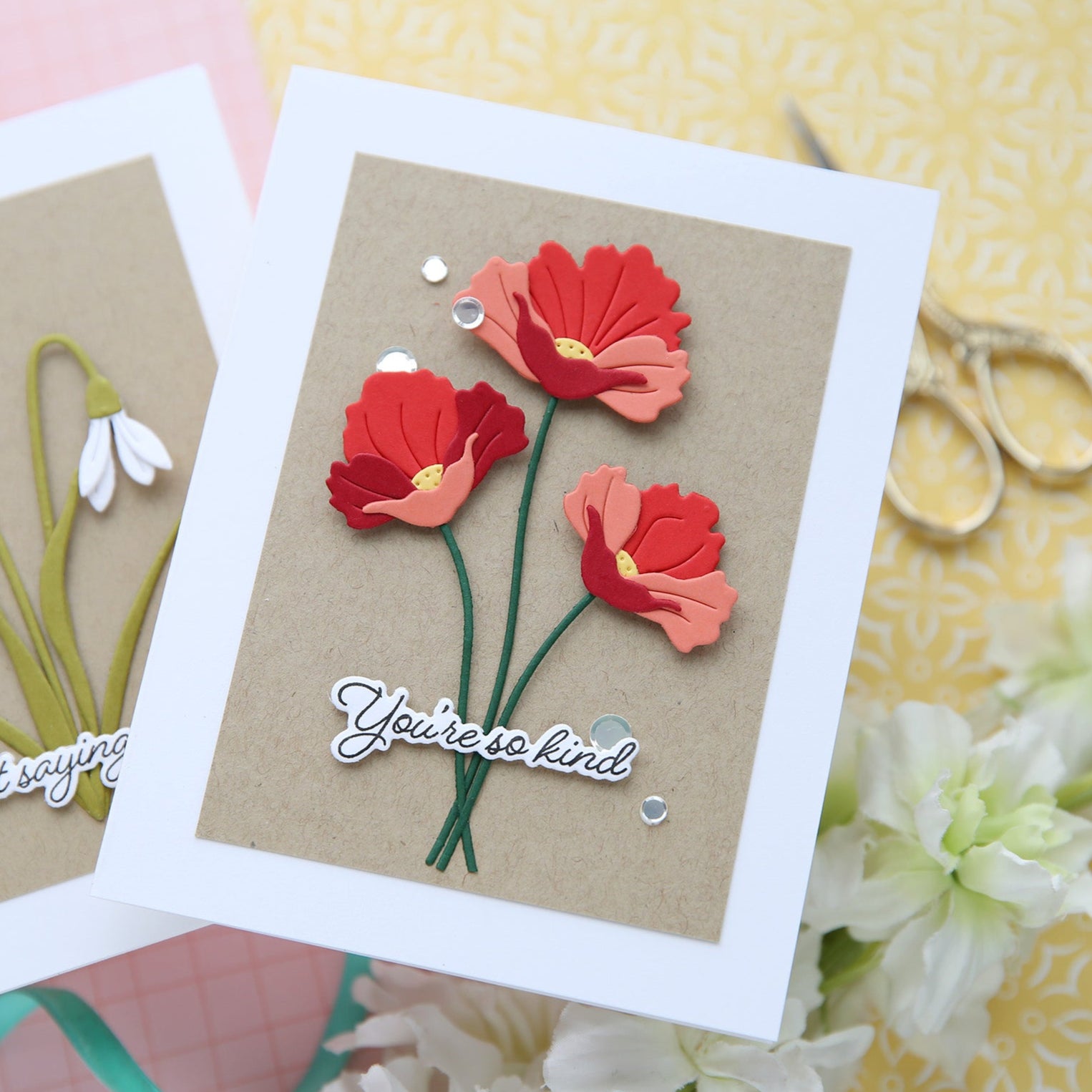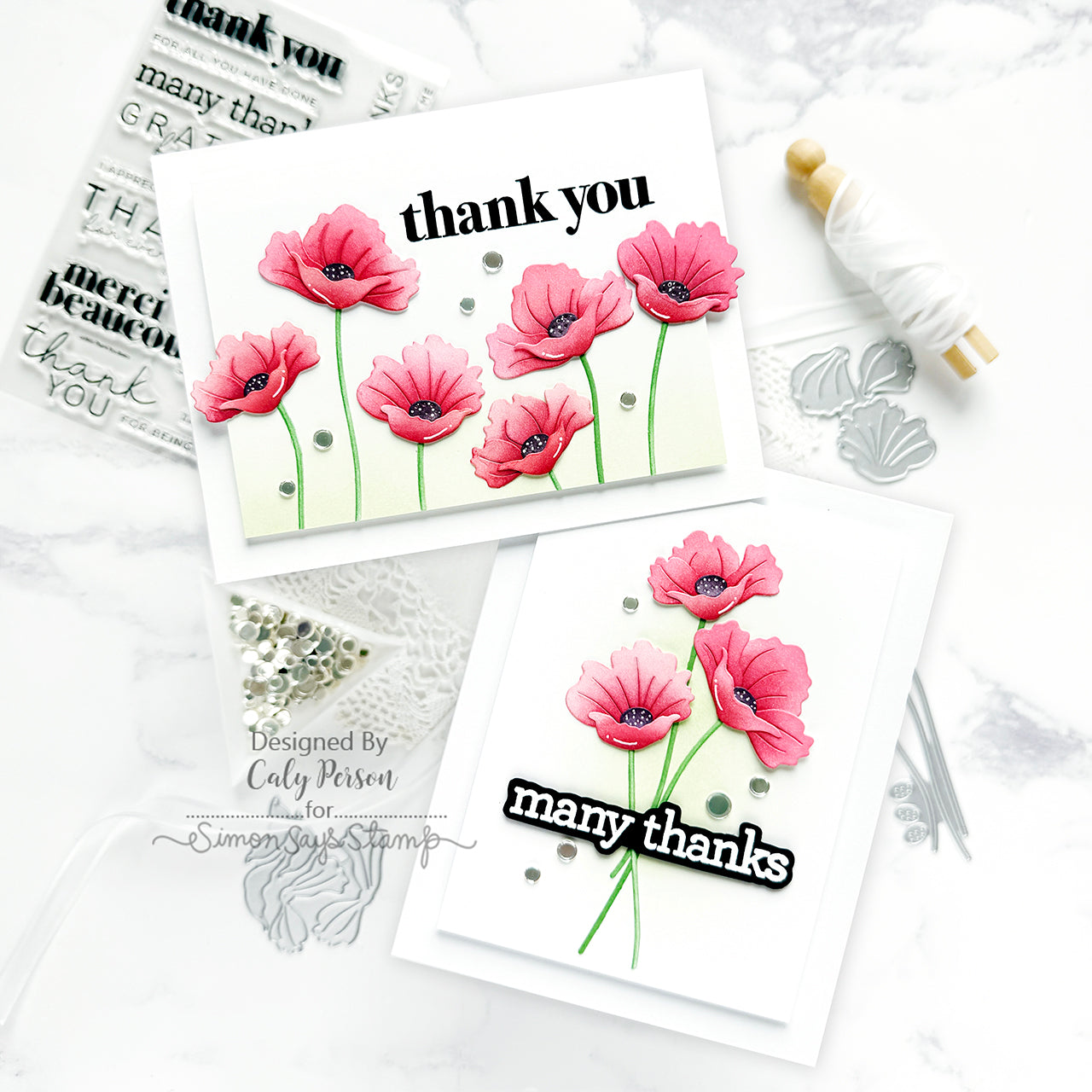The Simon Says Stamp Pretty Poppies dies let you create three elegant, handcrafted poppies with stunning detail. This set includes dies for fluttery petals, slender stems, and intricate centers, allowing you to layer and assemble delicate, dimensional flowers.