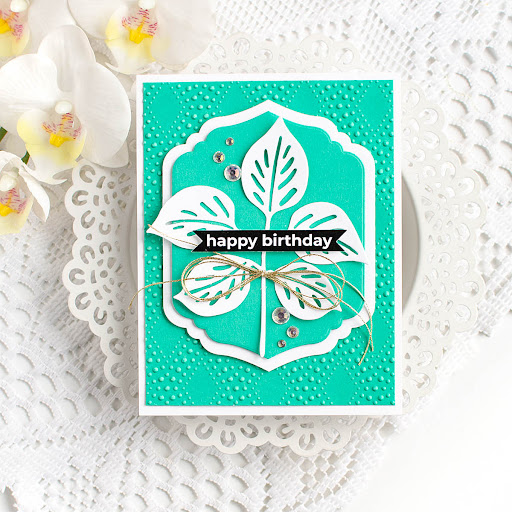 Add timeless botanical detail to your projects with the Simon Says Stamp Rose Branch die. This elegant die cuts a leafy stem featuring five gracefully arranged leaves, each with open areas that reveal the midribs and veins for a light, intricate effect.