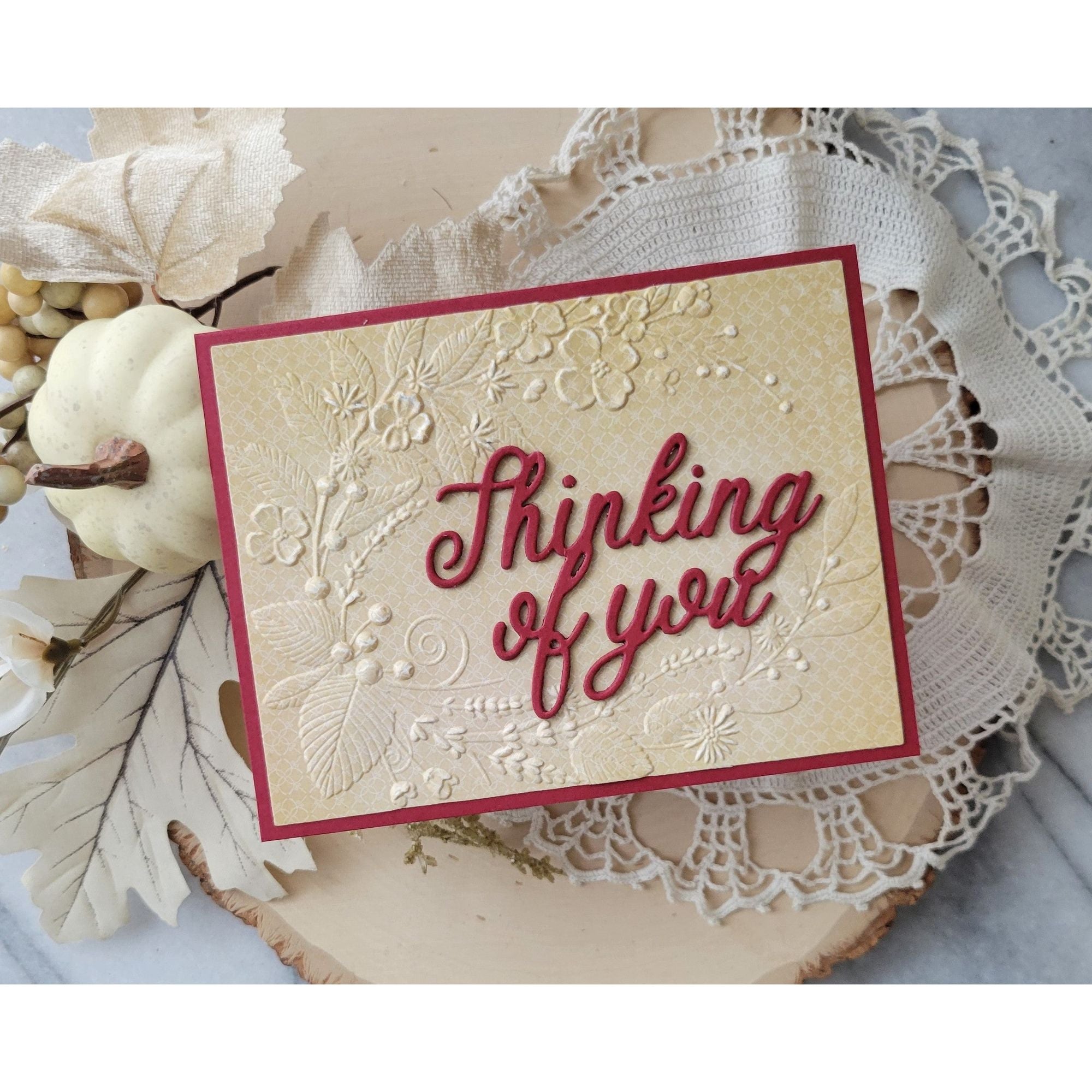 The Simon Says Stamp Scripty Thinking of You dies offer an elegant way to send heartfelt sentiments. This set cuts a flourishy calligraphy-style "Thinking of You" sentiment along with its coordinating outline, making it easy to add a polished, dimensional look to your projects.