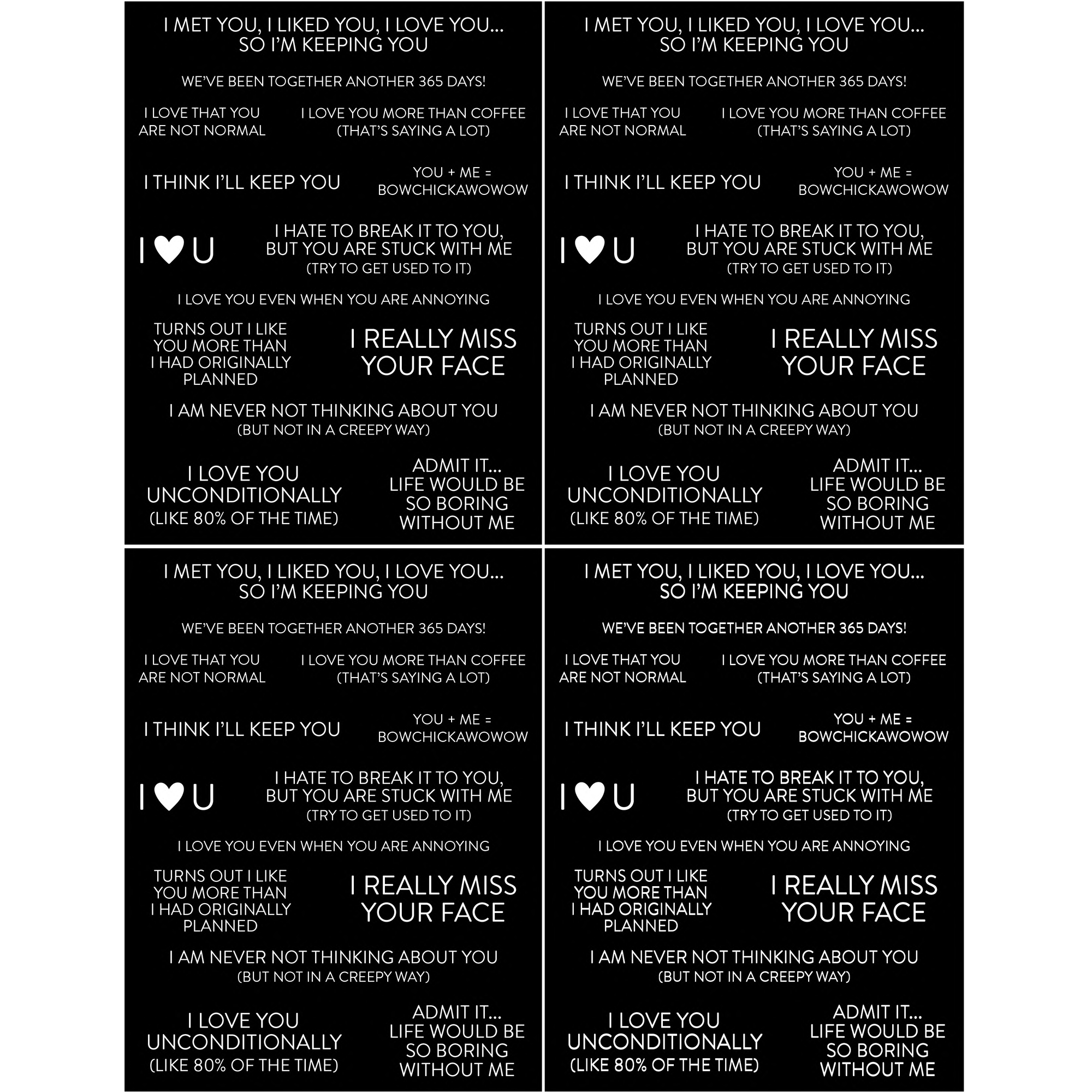 4 cards that are each 4.25 x 5.5 inches, all 4 are the same with varying text size and with a love theme.