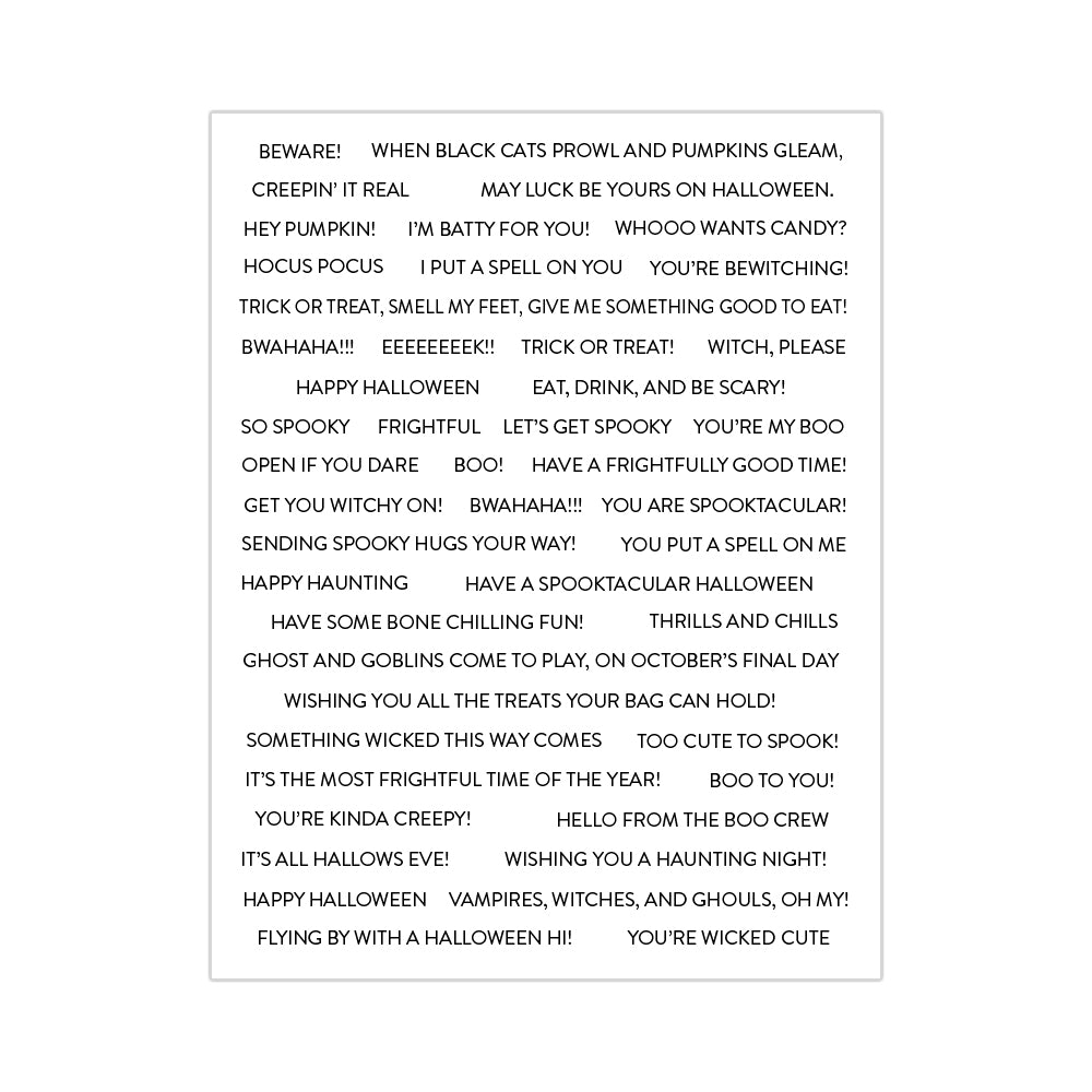 This pack of 4 identical cards are each 4.25 x 5.5 inches and have a Halloween theme.