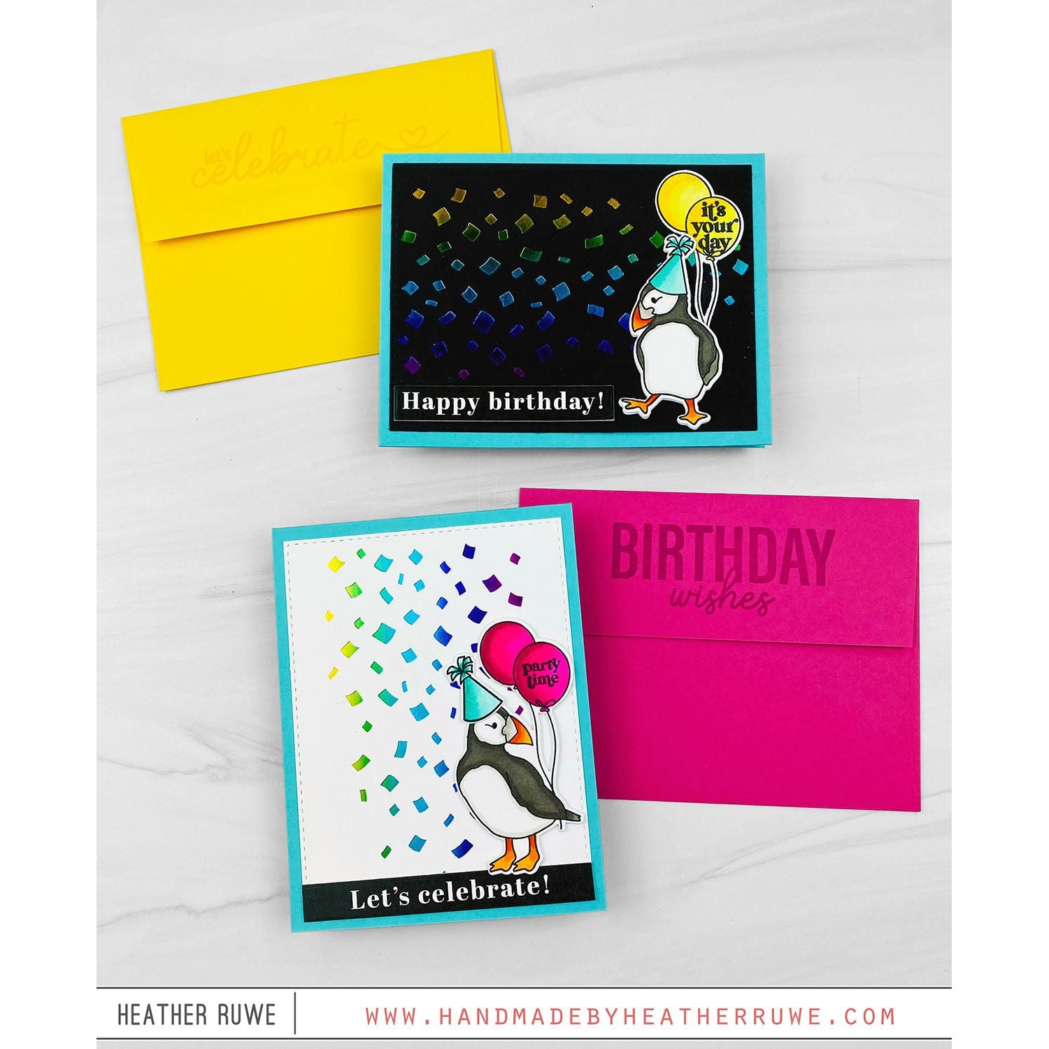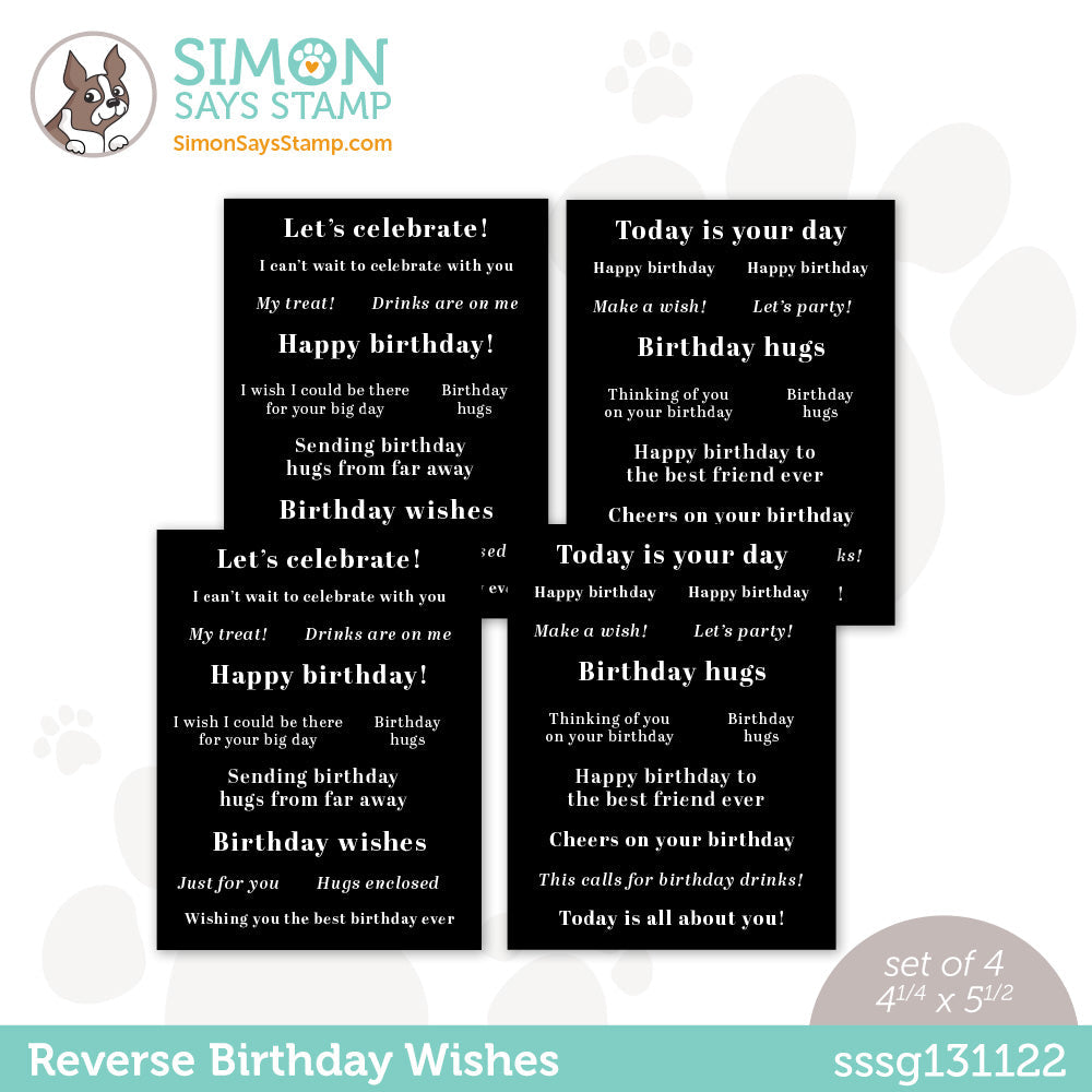 Each of the 4 cards in this set is 4.25 x 5.5 inches and contains various birthday-themed sentiments. This product is available exclusively at Simon Says Stamp. They are ideal for trimming and putting onto your cards as main sentiments or sub sentiments. And since they are printed with toner, these are foilable! Stock up your stash with these handy greetings! Printed in the USA on Neenah Classic Crest 110 lb Smooth Solar White paper.