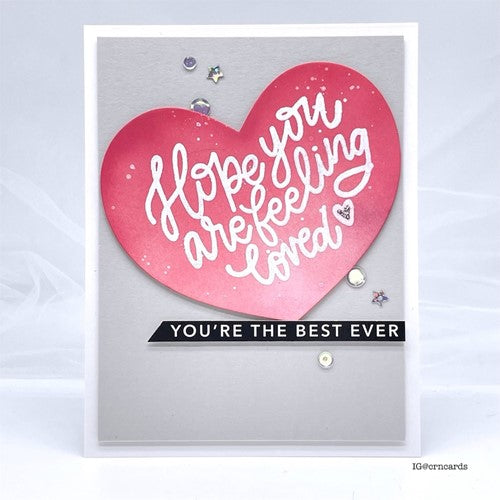 Each of the 4 cards in this set is 4.25 x 5.5 inches and contains various love-themed sentiments. This product is available exclusively at Simon Says Stamp. They are ideal for trimming and putting onto your cards as main sentiments or sub sentiments. And since they are printed with toner, these are foilable! Stock up your stash with these handy greetings! Printed in the USA on Neenah Classic Crest 110 lb Smooth Solar White paper.