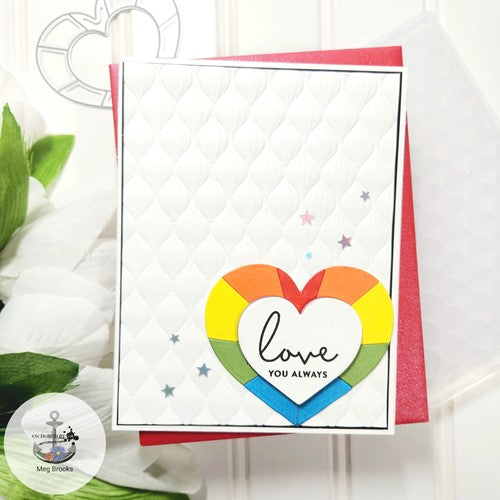This fun heart cuts a sectioned outline for multicolored or textured pieces and interest! Simon Says Stamp dies are made of 100% durable steel and usable in nearly every machine on the market. Use wafer dies on cardstock, felt, fabric, even shrink plastic! You can use wafer thin dies to cut, stencil, emboss and create!