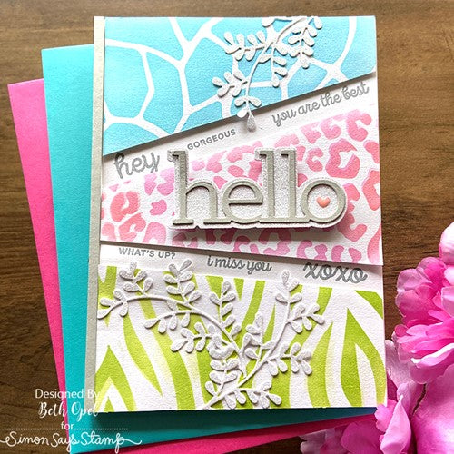 This set of 3 6x6 stencils allows you to create patterns in leopard, giraffe, and zebra prints! Blend with inks or use with glitz gels, pastes, sprays, markers, journaling pens—you name it!