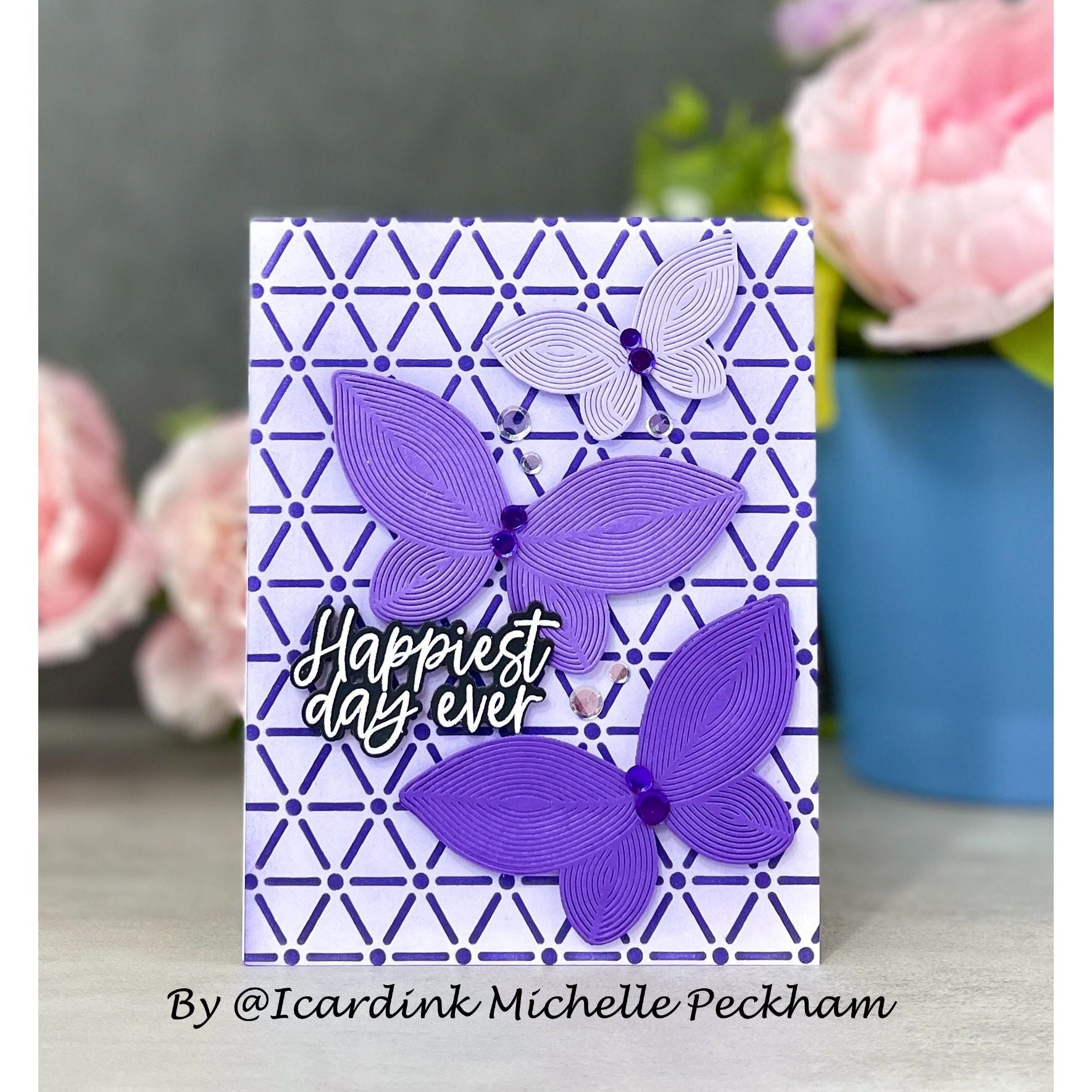 Discover the Simon Says Stamp Dash & Dot stencil! This versatile stencil crafts a captivating symmetrical pattern of vertical and diagonal lines with dots at the intersections.