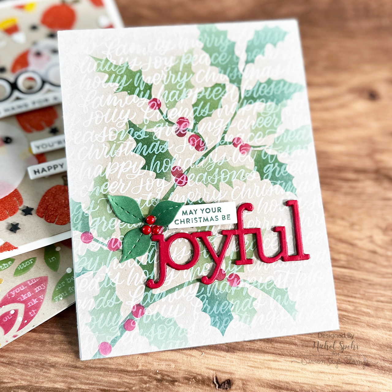 Use these three layered 6x6 inch stencil set to create a graceful holly branch as a feature or background for a card or project! Fun fact: it coordinates with embossing folder s4248. Blend with inks or use with glitz gels, pastes, sprays, markers, journaling pens—you name it!