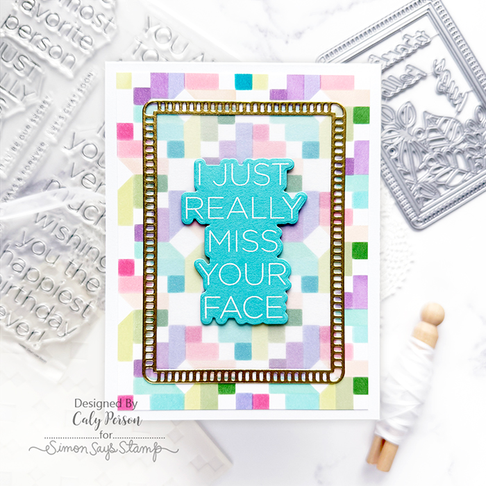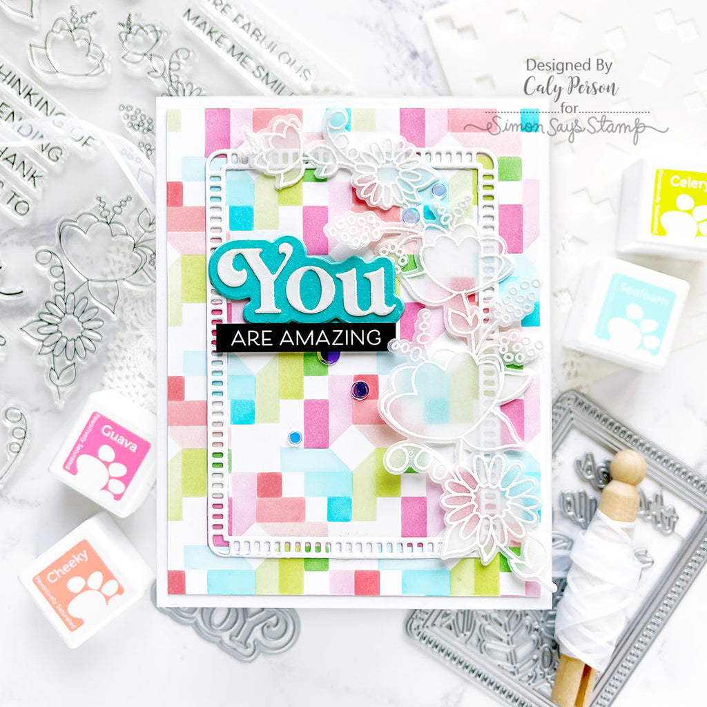The Simon Says Stamp Quilting Quarters layering stencils let you create a background that resembles a traditional quilt pattern.