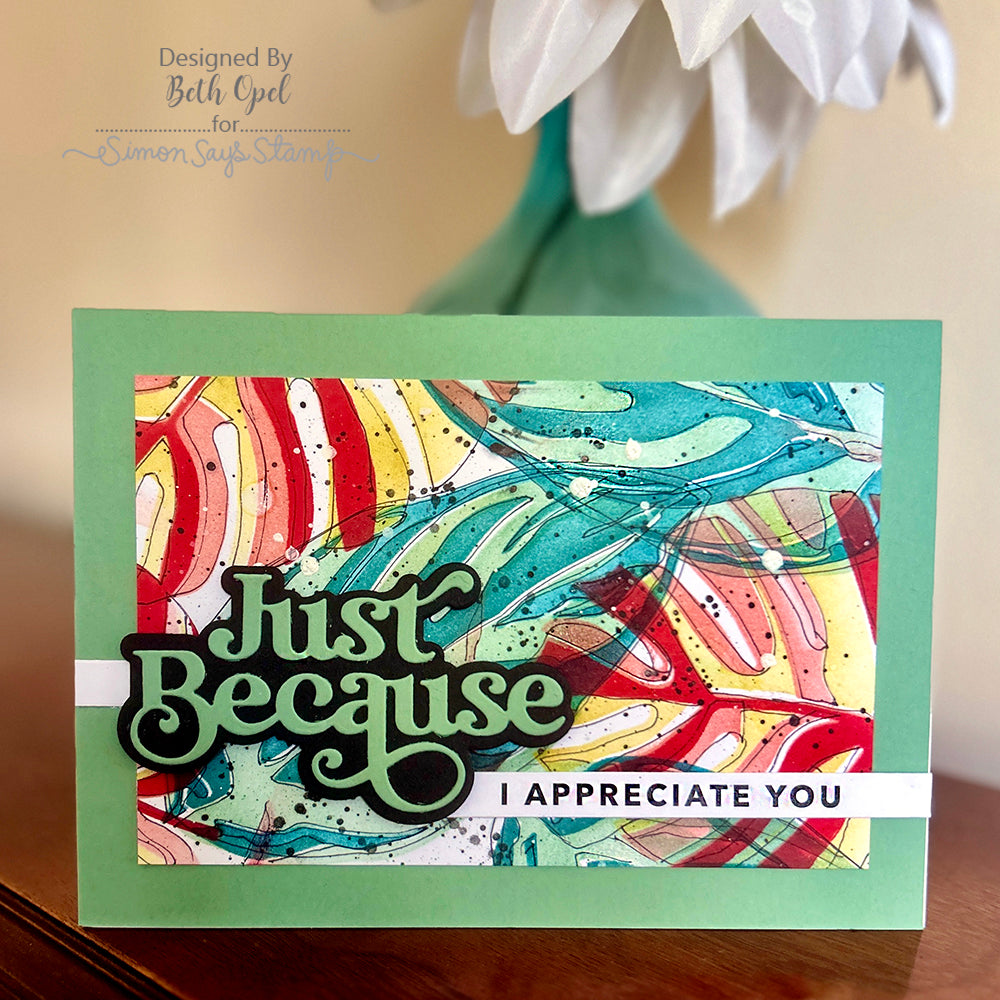 The Simon Says Stamp Layering Stromanthe Stencils set features four stencils that work together to create a detailed and graphic stromanthe leaf.