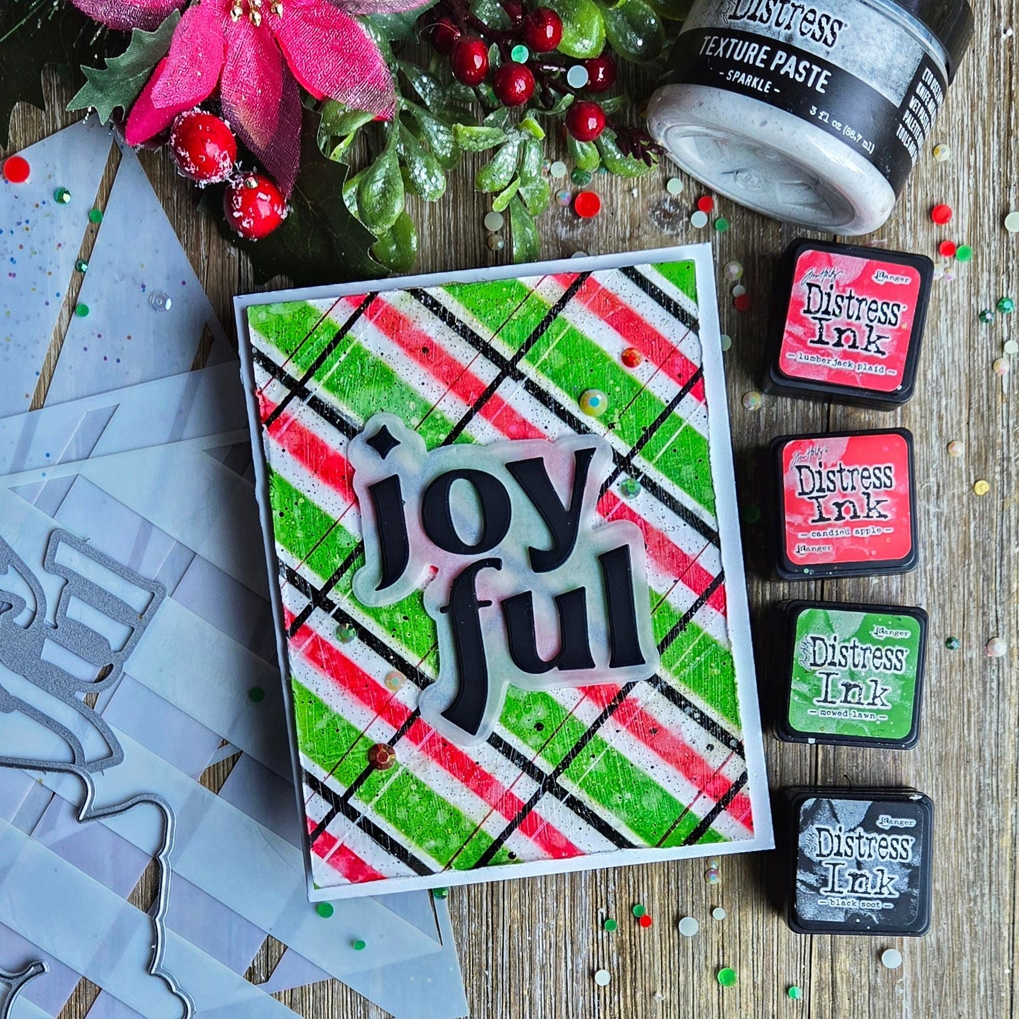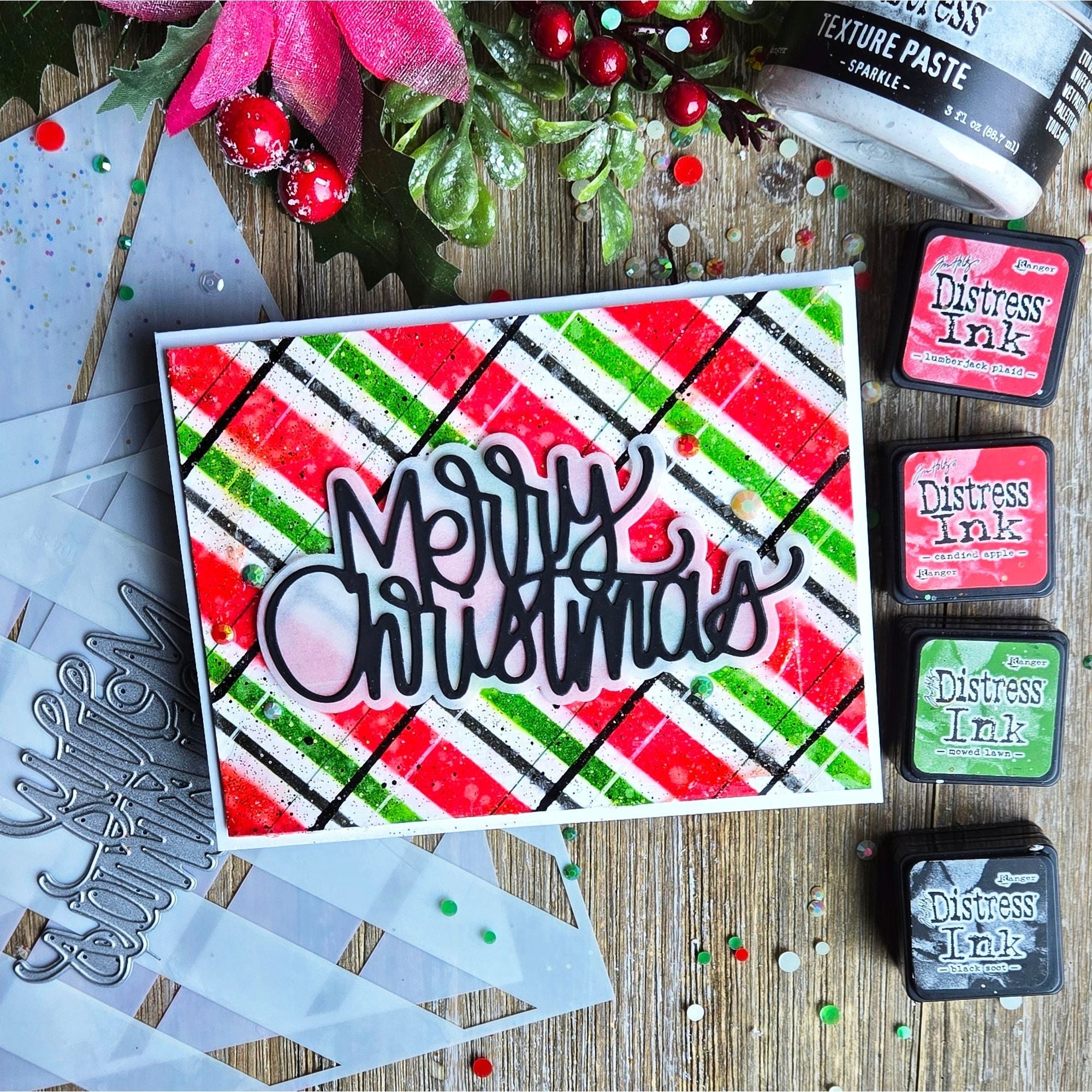 The Simon Says Stamp Stripes and Plaid Builder stencils allow you to create custom plaid or striped backgrounds in a variety of colors, perfect for adding a personalized touch to your crafting projects.