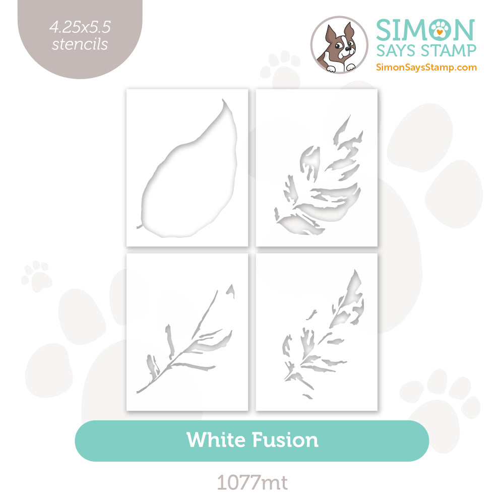 The Simon Says Stamp White Fusion stencils set features four stencils that work together to create a detailed and graphic white fusion calathea leaf.