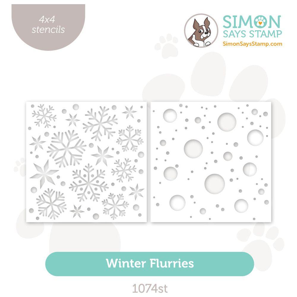 The Simon Says Stamp Winter Flurries stencils set includes two layering stencils, perfect for creating a wintry backdrop filled with delicate snowflakes and dots. This versatile set allows you to add layers of various flake shapes and dot sizes to achieve a dynamic snowy effect on your projects.