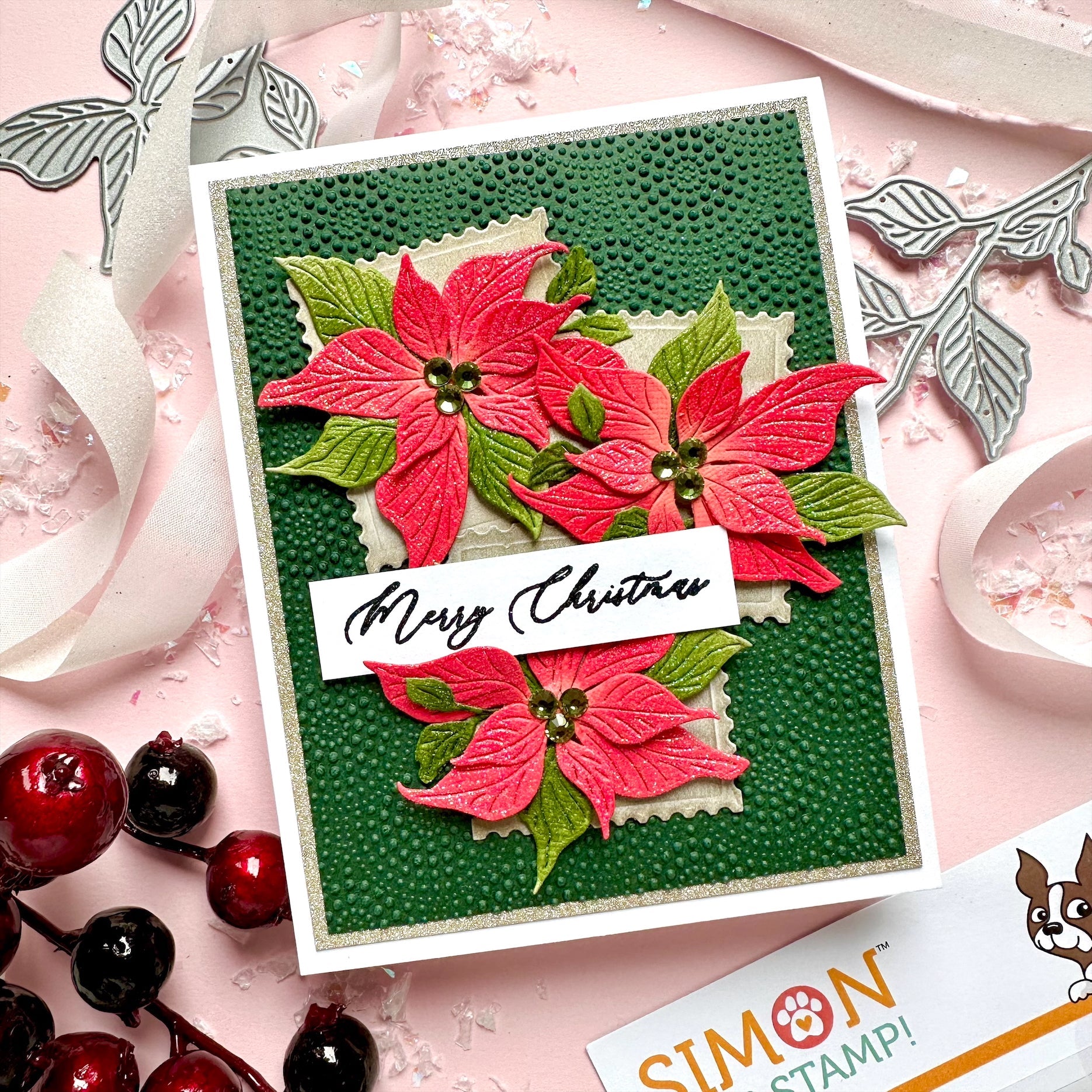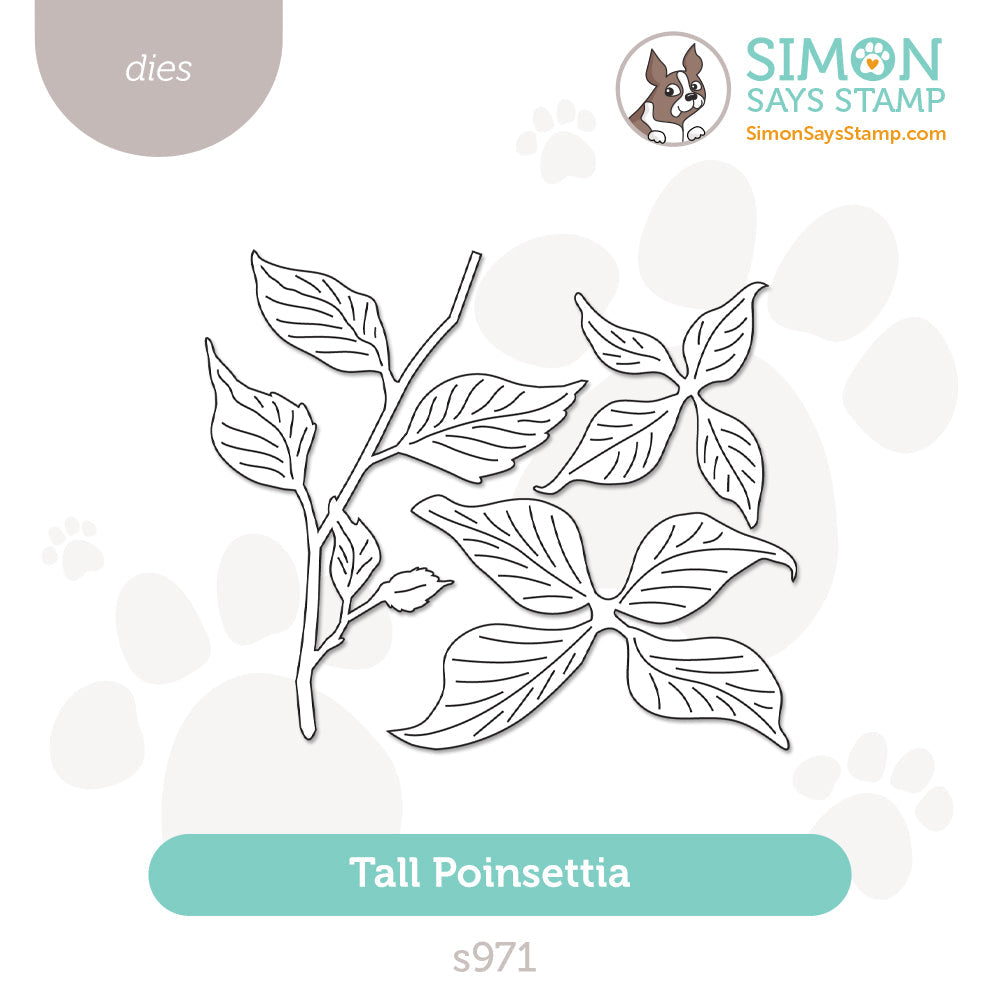 The Simon Says Stamp Tall Poinsettia wafer dies allow you to create a stately poinsettia flower with ease. The set includes dies to cut a leafy poinsettia stem and two petal layers, perfect for building a dimensional, festive flower.