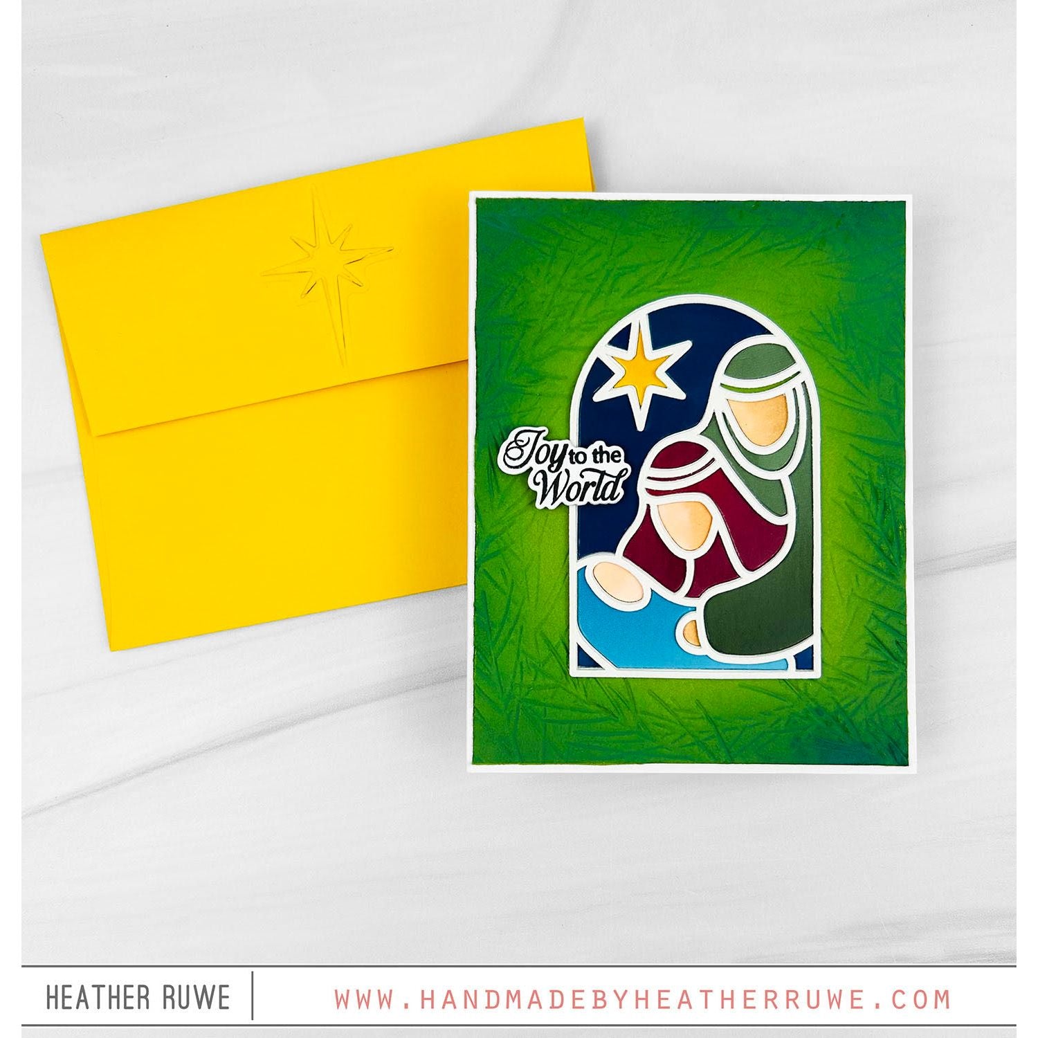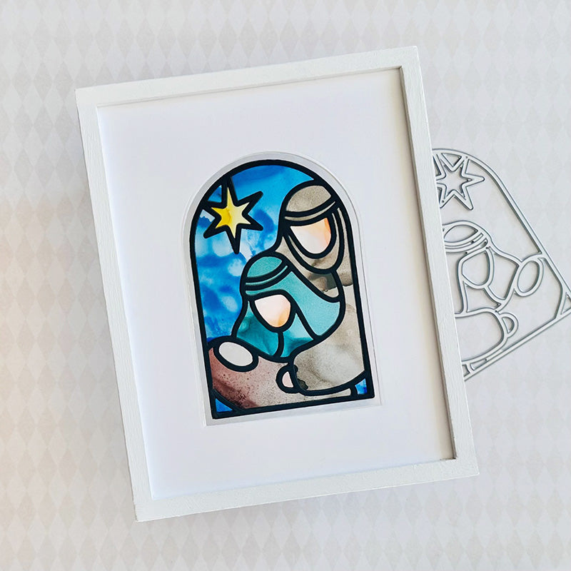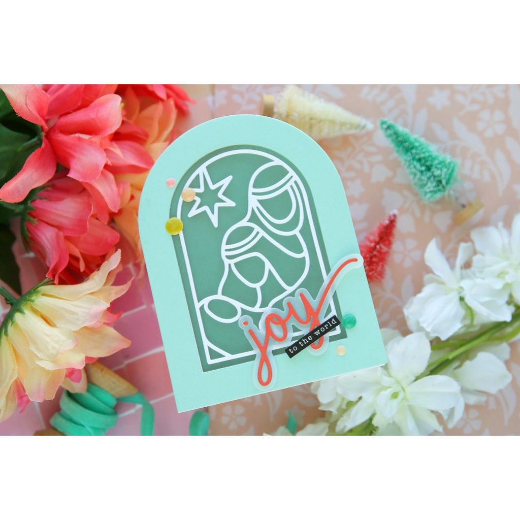 Celebrate the true meaning of Christmas with the Simon Says Stamp The Nativity die. This beautifully designed arched die features a simple stained-glass–style depiction of the Holy Family beneath a beaming Christmas star.
