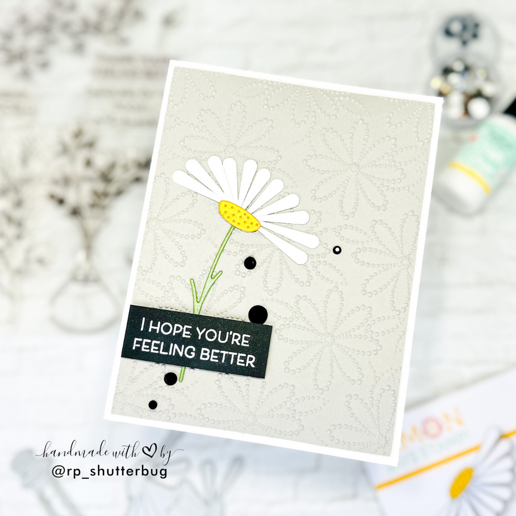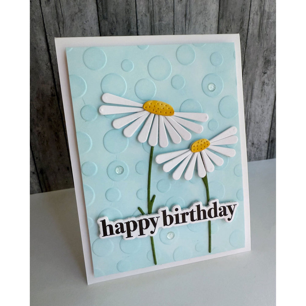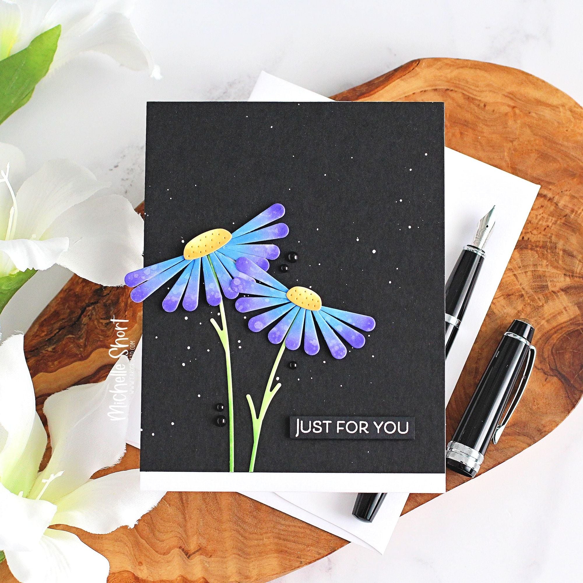 Add whimsical charm to your floral projects with the Simon Says Stamp Tilted Daisies dies. This versatile set includes four layering daisy blossom pieces, two stems, and two flower centers—everything you need to create two stylized, dimensional blooms.