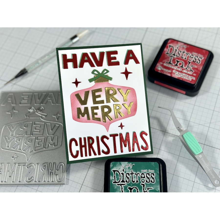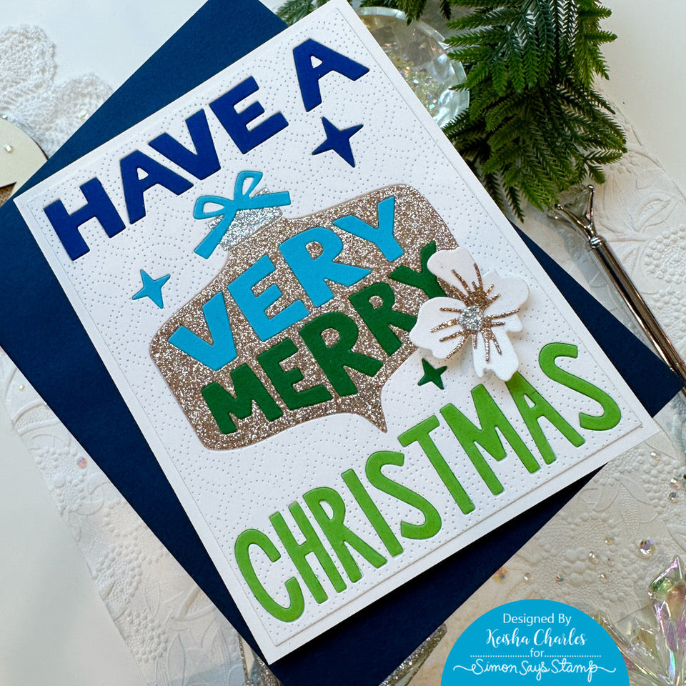 The Simon Says Stamp Very Merry Cover die is your go-to tool for crafting the perfect holiday card cover panel. This single die effortlessly transforms your card cover into a festive masterpiece, featuring a stylized "Have a Very Merry Christmas" design, complete with an enchanting ornament and twinkling stars.