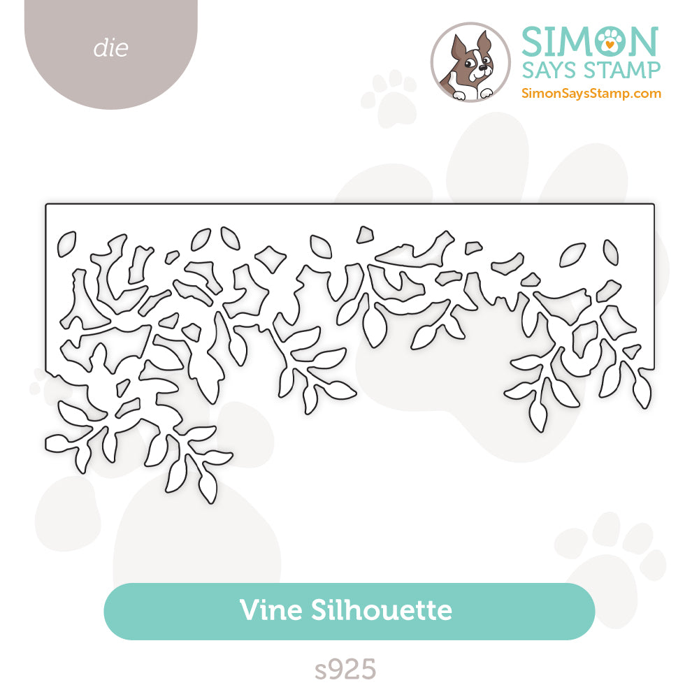 The Simon Says Stamp Vine Silhouette die creates an elegant vine border with a solid top and leafy branches meandering downward.