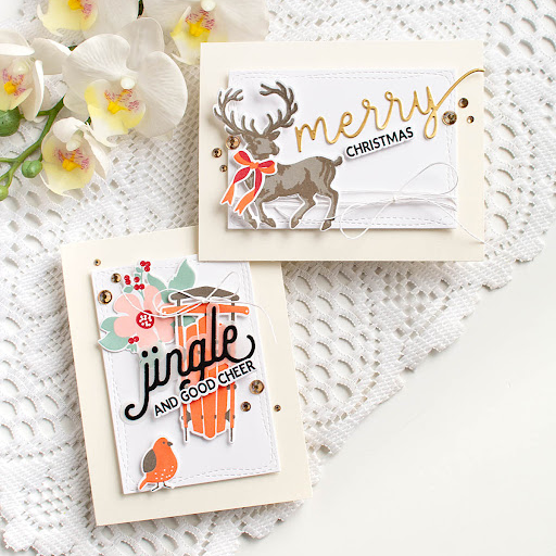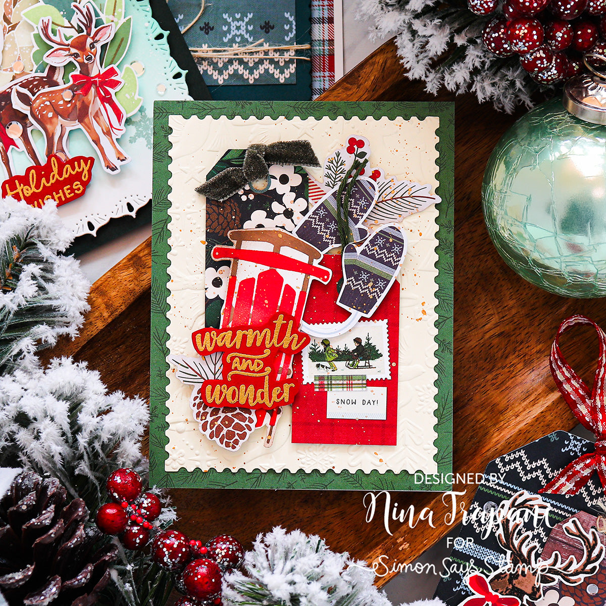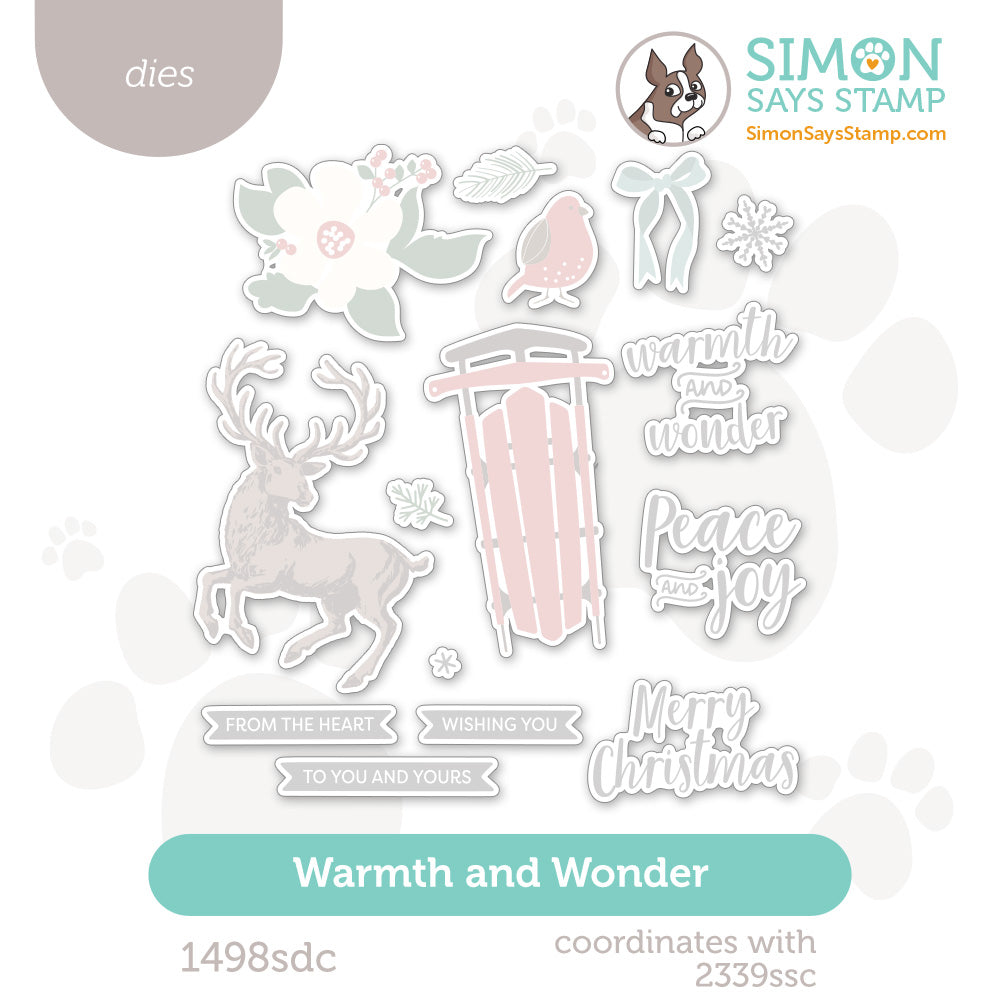 The Simon Says Stamp Warmth and Wonder dies coordinate perfectly with the Warmth and Wonder stamp set, giving your seasonal projects a crisp and polished finish. This versatile die collection cuts out all of the detailed imagery—including the deer, sled, floral cluster, bird, bow, greenery, and snowflakes—as well as the three script sentiments and three banner-style sub-sentiments.