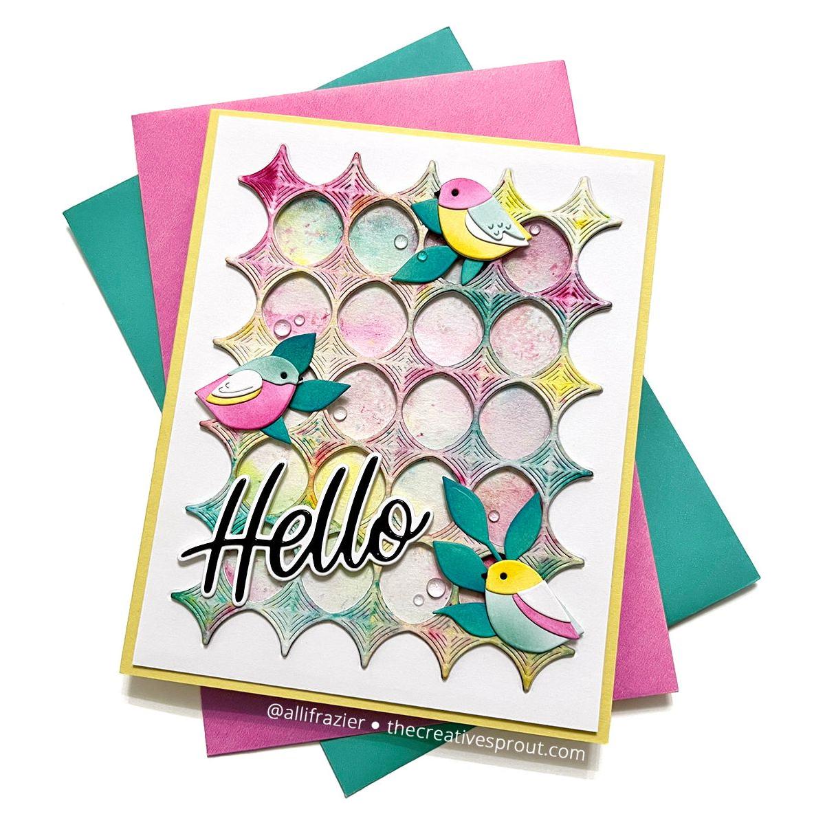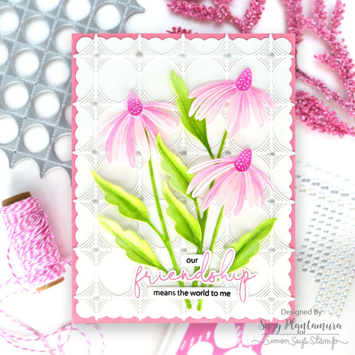 The Simon Says Stamp Whirl Diamond Plate die is a versatile addition to your crafting arsenal. This intricate die effortlessly creates an eye-catching background featuring a pattern of curved diamond shapes with circular openings between them.