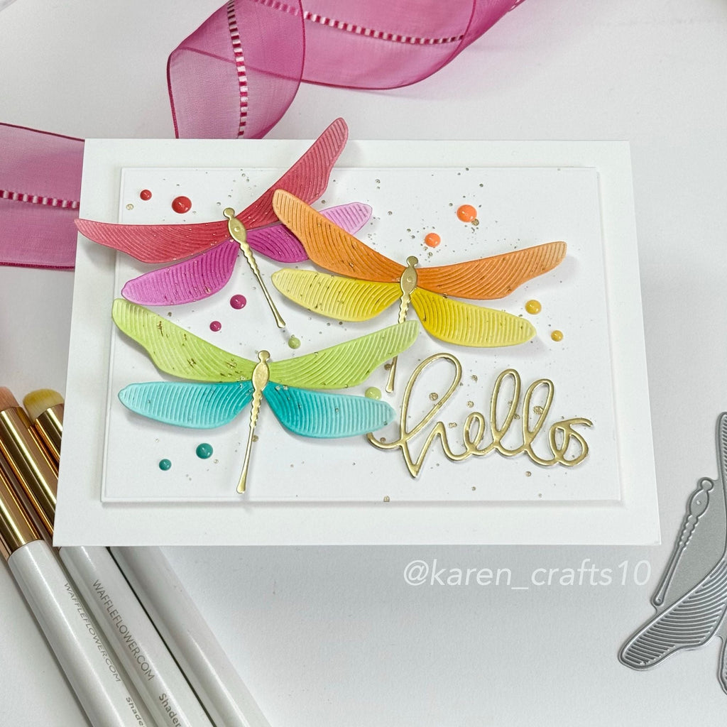 Create stunning nature-themed designs with the Simon Says Stamp Whirl Dragonfly die. This versatile die set includes three intricately detailed pieces: two sets of elegantly shaped wings and a body, allowing you to effortlessly assemble a striking dragonfly.