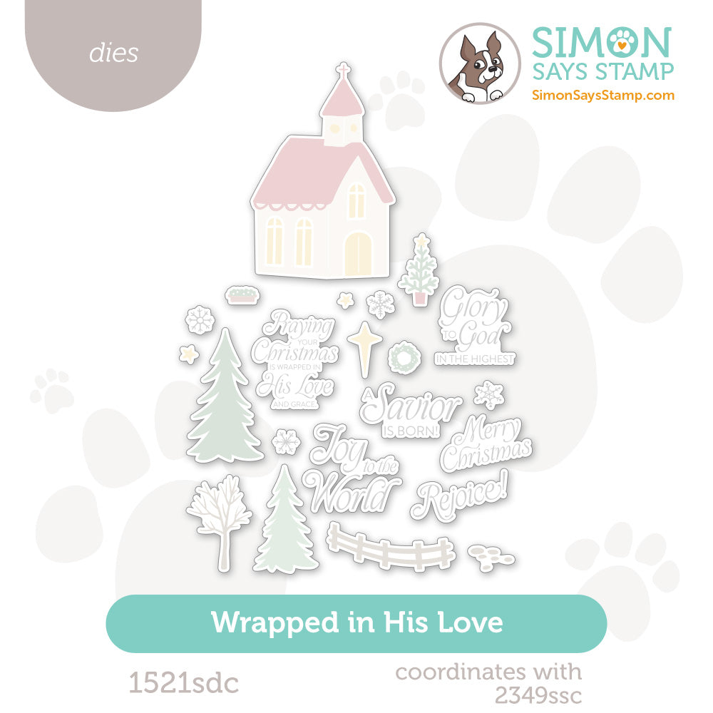 Bring dimension and precision to your faith-filled holiday projects with the Simon Says Stamp Wrapped in His Love dies. Designed to coordinate perfectly with the Wrapped in His Love stamp set, this versatile collection cuts out the three completed layered images—along with all the additional accent pieces, including the trees, fence, stars, wreath, and snowflakes.