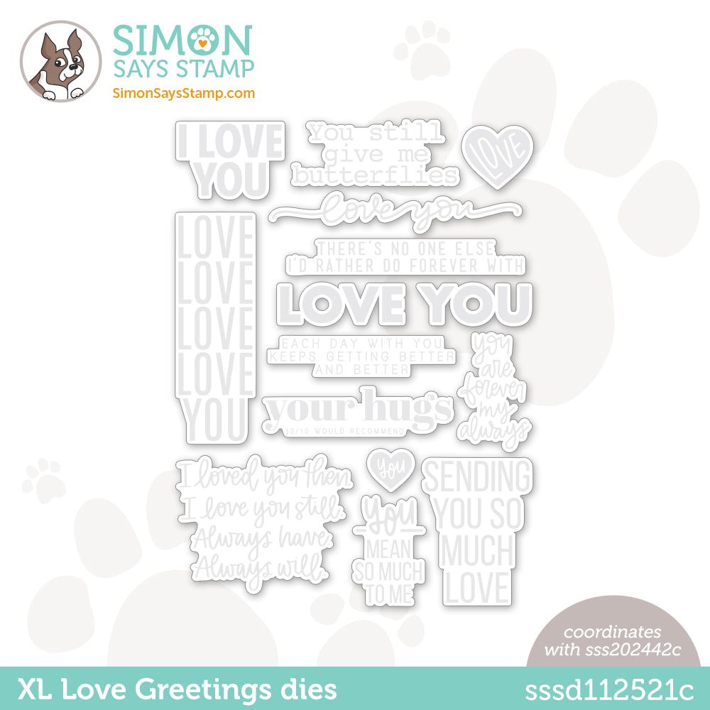 This die set measures approximately 5.5 x 7 inches and coordinates with the XL Love Greetings stamp set (sss202442c).