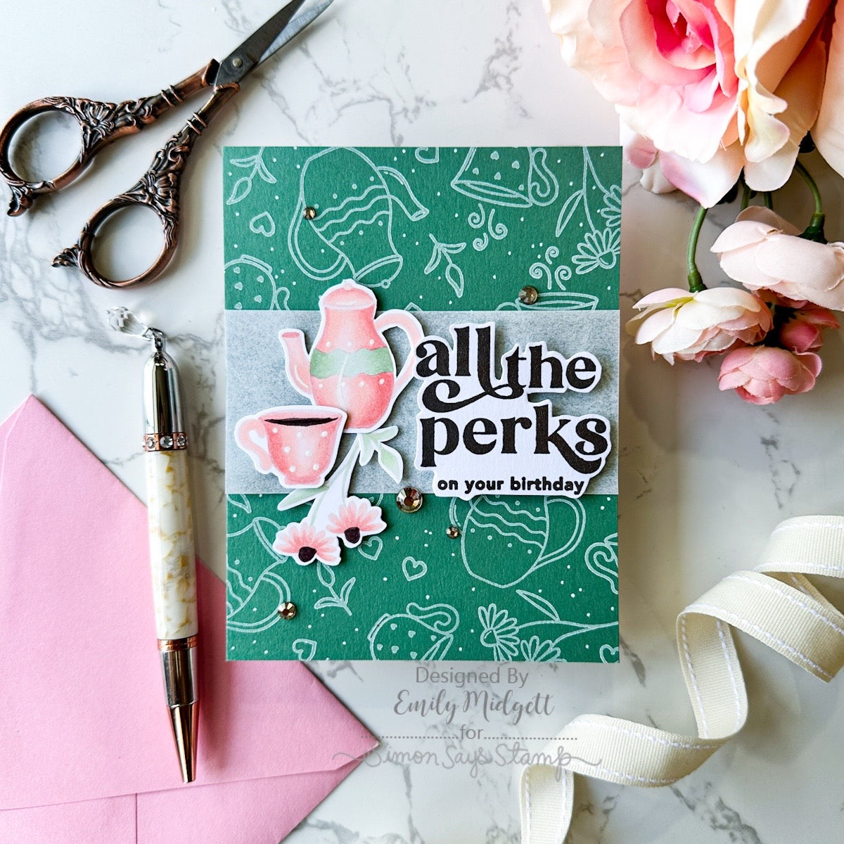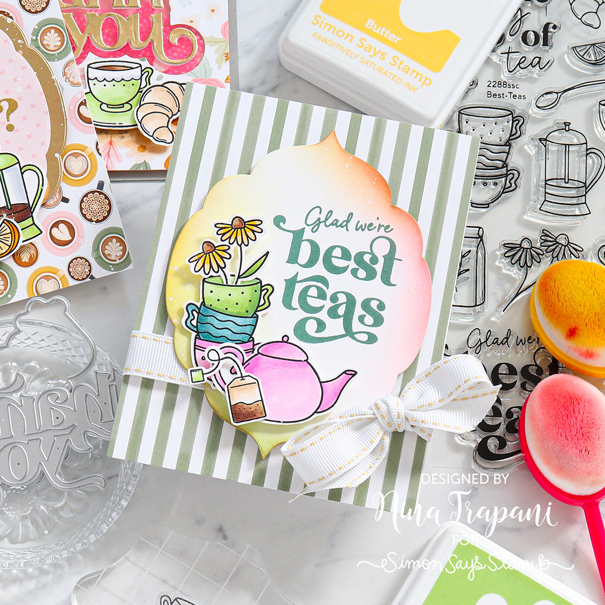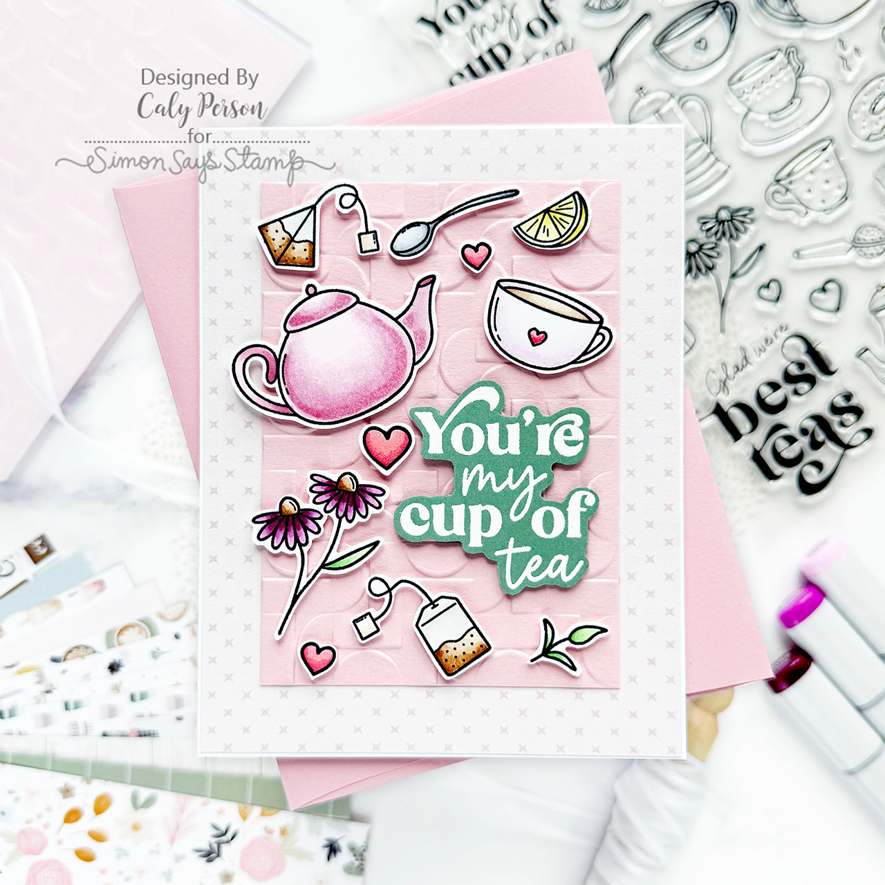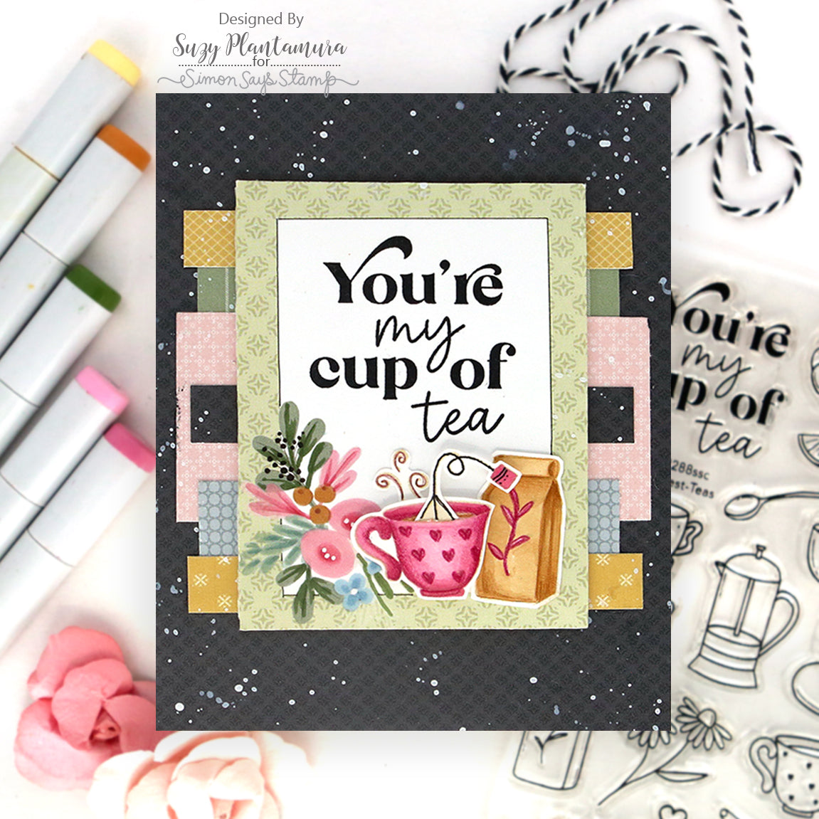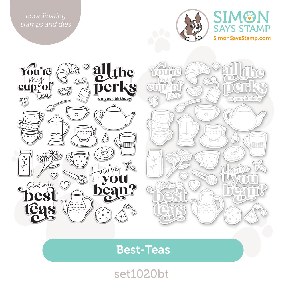 The Simon Says Stamp Best-Teas stamp and die set is steeped in charm and perfect for any tea lover. This delightful collection features an array of tea-time essentials, including teacups, teapots, teabags, sweet treats, and dainty florals—everything you need to brew up the perfect scene.