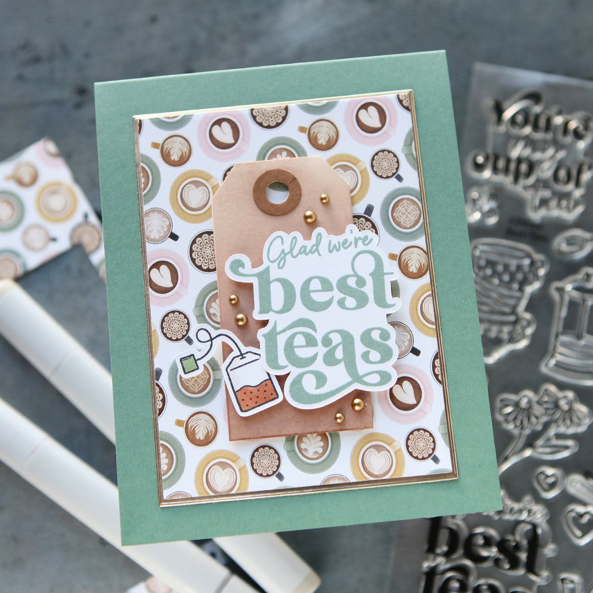 The set also includes a variety of tea-themed punny sentiments that add a playful and heartwarming touch to your cards, tags, and journaling pages.