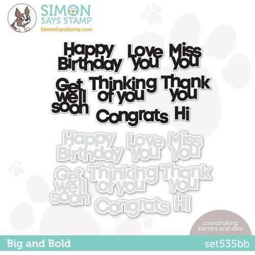 Simon Says Stamp dies are usable in nearly every machine on the market. Use wafer dies on cardstock, felt, fabric, even shrink plastic! You can use wafer thin dies to cut, stencil, emboss and create! Simon Says Stamp clear stamps are high quality photopolymer and made in the USA. This stamp and die set includes the 4 x 6 inch stamp set Big and Bold (sss302531c) and the Big and Bold coordinating wafer die set (sssd112627c).
