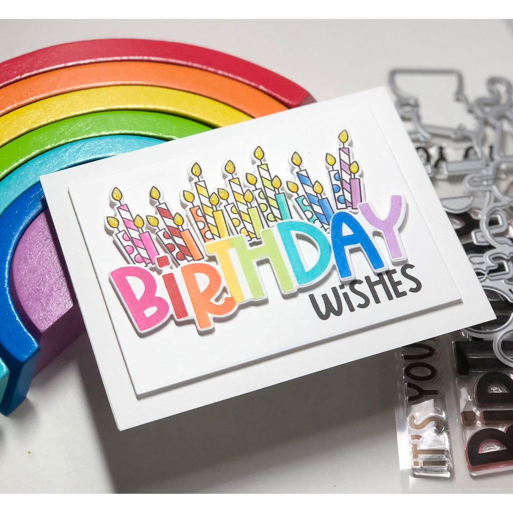 - Includes 4x6 inch clear stamp set and 2 metal dies that cut out all of the images and the large Birthday sentiment.