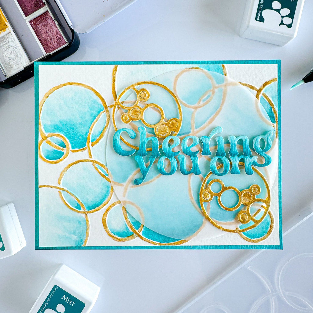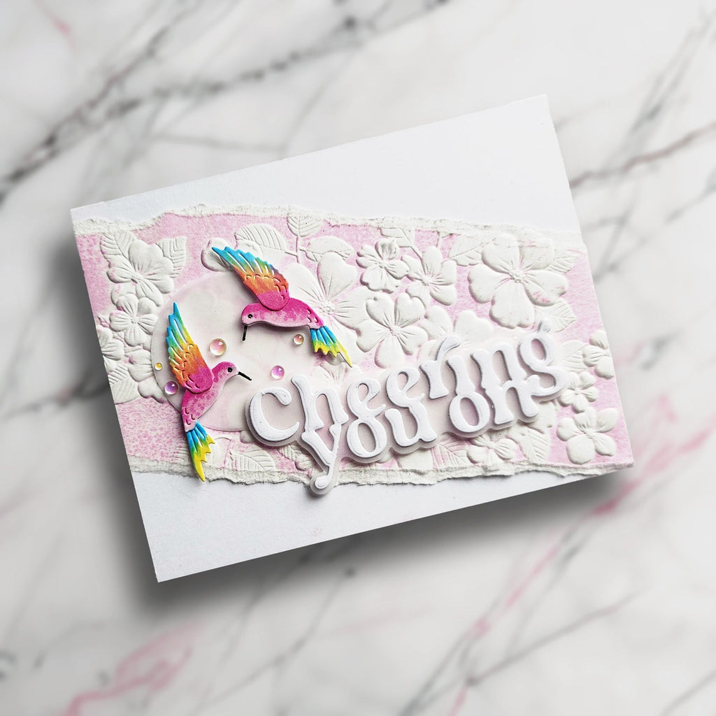 This set features the uplifting phrase "Cheering you on" in a prominent, bold font with coordinating dies, accompanied by a selection of smaller sub-sentiments to enhance your messages. Sub-sentiments include: