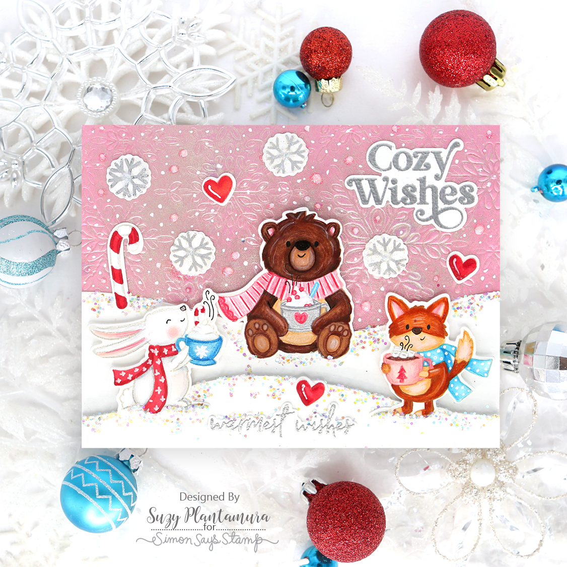 Embrace the warmth of the season with the Simon Says Stamp Cocoa and Joy stamp and die set. This heartwarming collection features charming snowmen and adorable animals delighting in festive warm beverages.