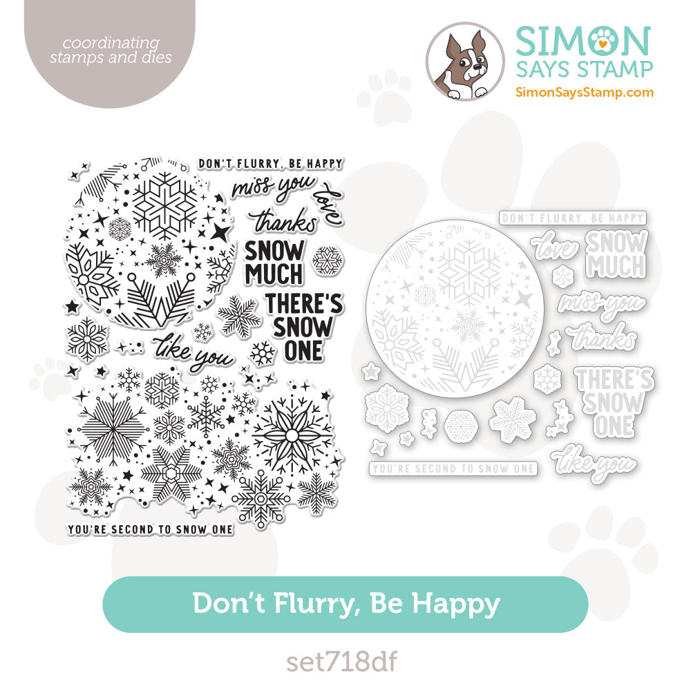 Whether you're designing winter cards, creating snowy landscapes, or working on other frosty projects, this stamp and die set allows you to convey the magic of winter with creativity and style. Elevate your crafting and spread the joy with the Don't Flurry, Be Happy set by Simon Says Stamp, ensuring your creations are both heartwarming and artistically inspiring.