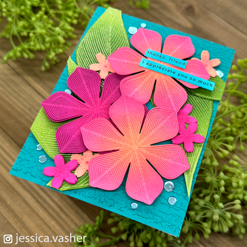 - Includes a 6x8 inch clear photopolymer stamp set and 14 metal dies.