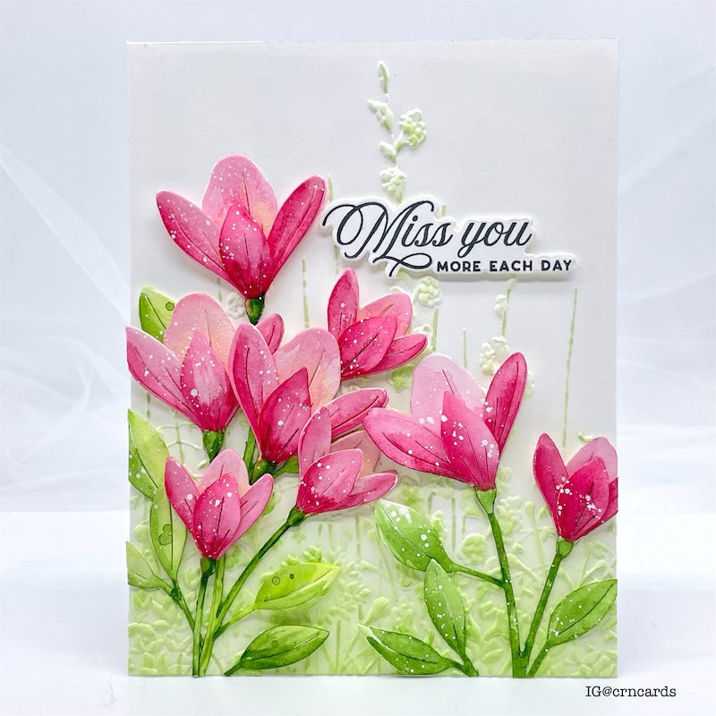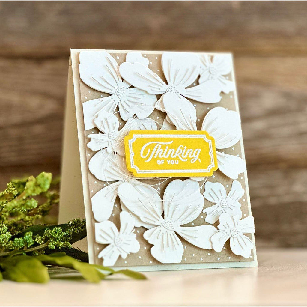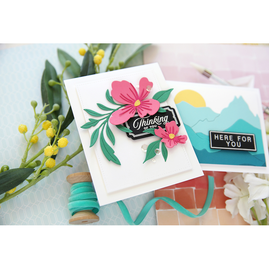 Not a fan of fussy cutting? The Etched Greetings dies cut out both floral images and all of the sentiments and sub-sentiments. .