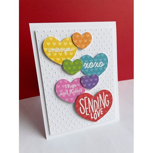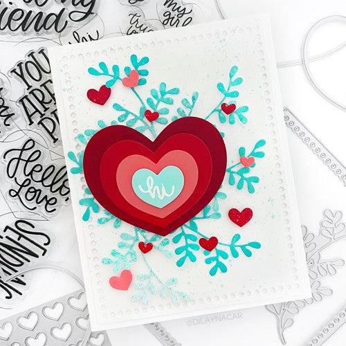 This 6x8 inch clear stamp set is ideal for expressing love and affection! With 15 heart-shaped sentiments (Love You, So Grateful You're My Friend, Sending Love, I Love Us, Thank You, and more), you'll reach for this set all year long! The coordinating Nested Round Hearts dies (sssd112763) allow you to not only cut out the stamp images perfects, but they can also be used for a multitude of other projects!