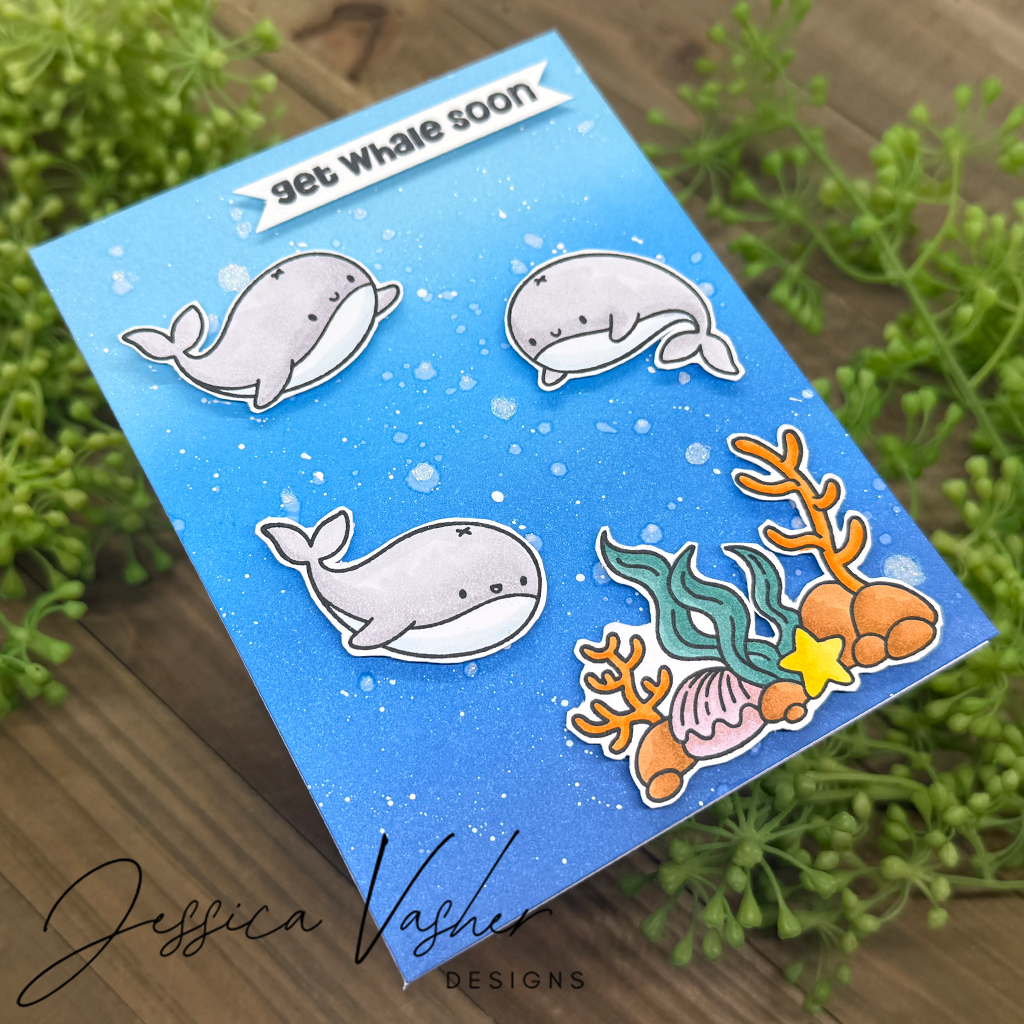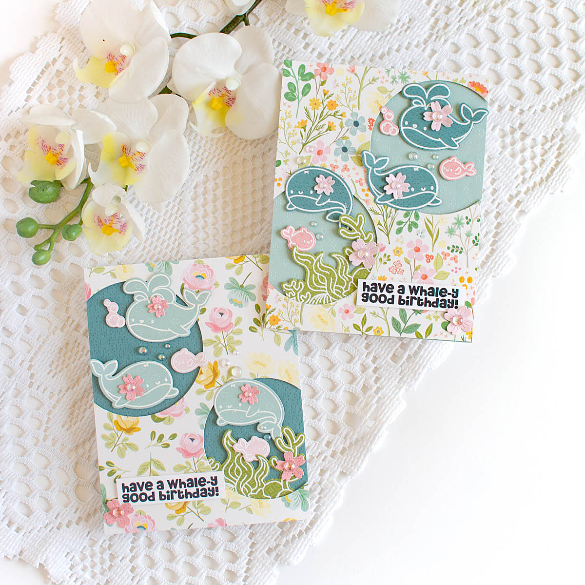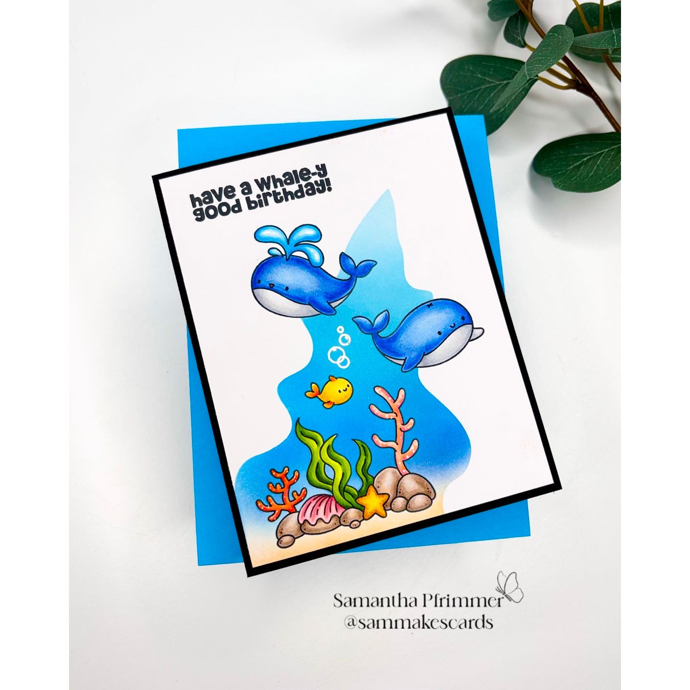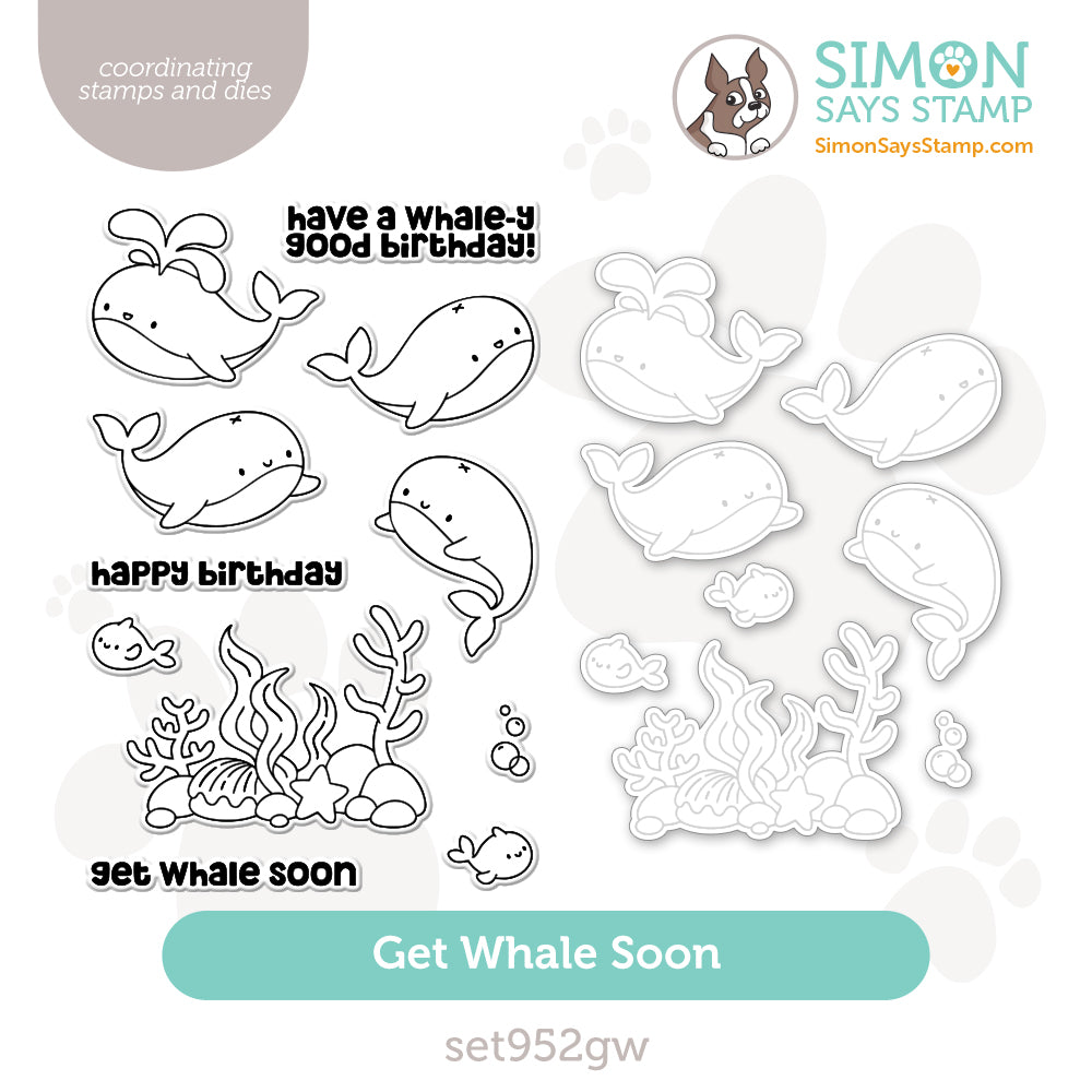 The Simon Says Stamp Get Whale Soon stamp and die set is a splash of cuteness perfect for sending cheerful greetings. This set features adorable whales along with charming accent images of fish, bubbles, and a sea floor scene to create delightful underwater designs.
