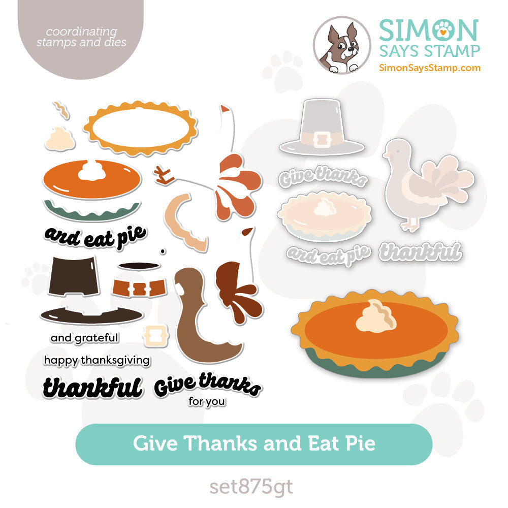 Celebrate Thanksgiving with the Simon Says Stamp Give Thanks and Eat Pie stamp and die set and the additional larger Pie die!