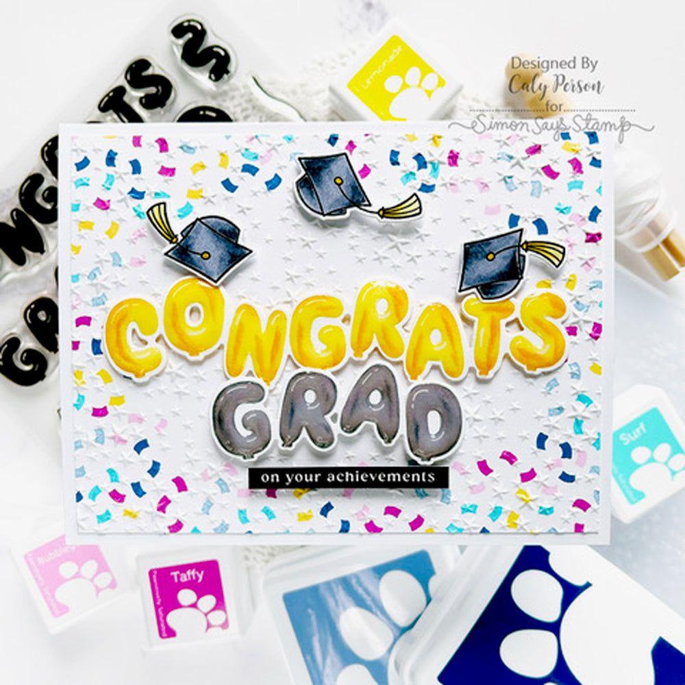 Celebrate academic achievements in style with the Simon Says Stamp Grad Balloons stamp and die set. This versatile set includes balloons that spell "CONGRATS" and "GRAD," along with mortarboards, confetti, and extra balloon shapes for added flair.