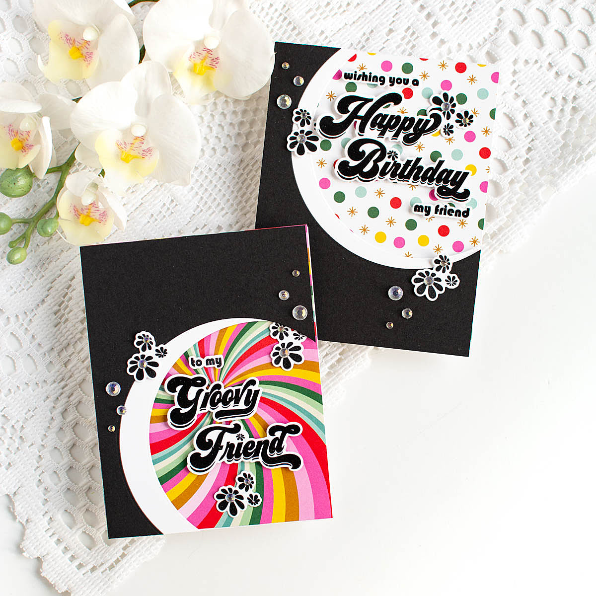 The dies cut out all of the retro-style sentiments along with the fun cluster of seventies-inspired flowers. Perfect for cards, journals, and creative projects that call for a little throwback flair, this stamp set adds personality, warmth, and playful style to your handmade designs.