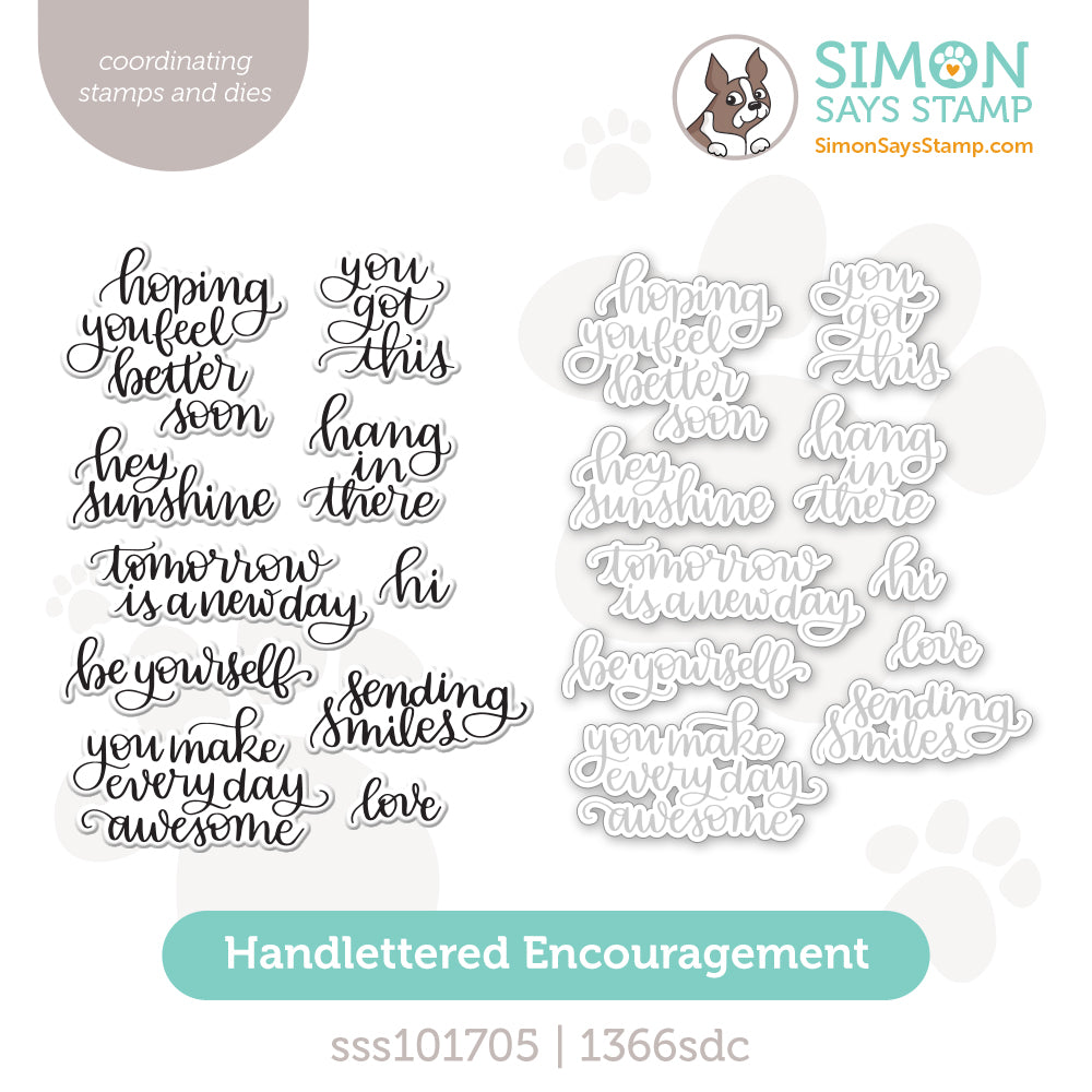 The Simon Says Stamp Handlettered Encouragement stamp and die set features a beautiful collection of uplifting greetings in an elegant handwritten script font.