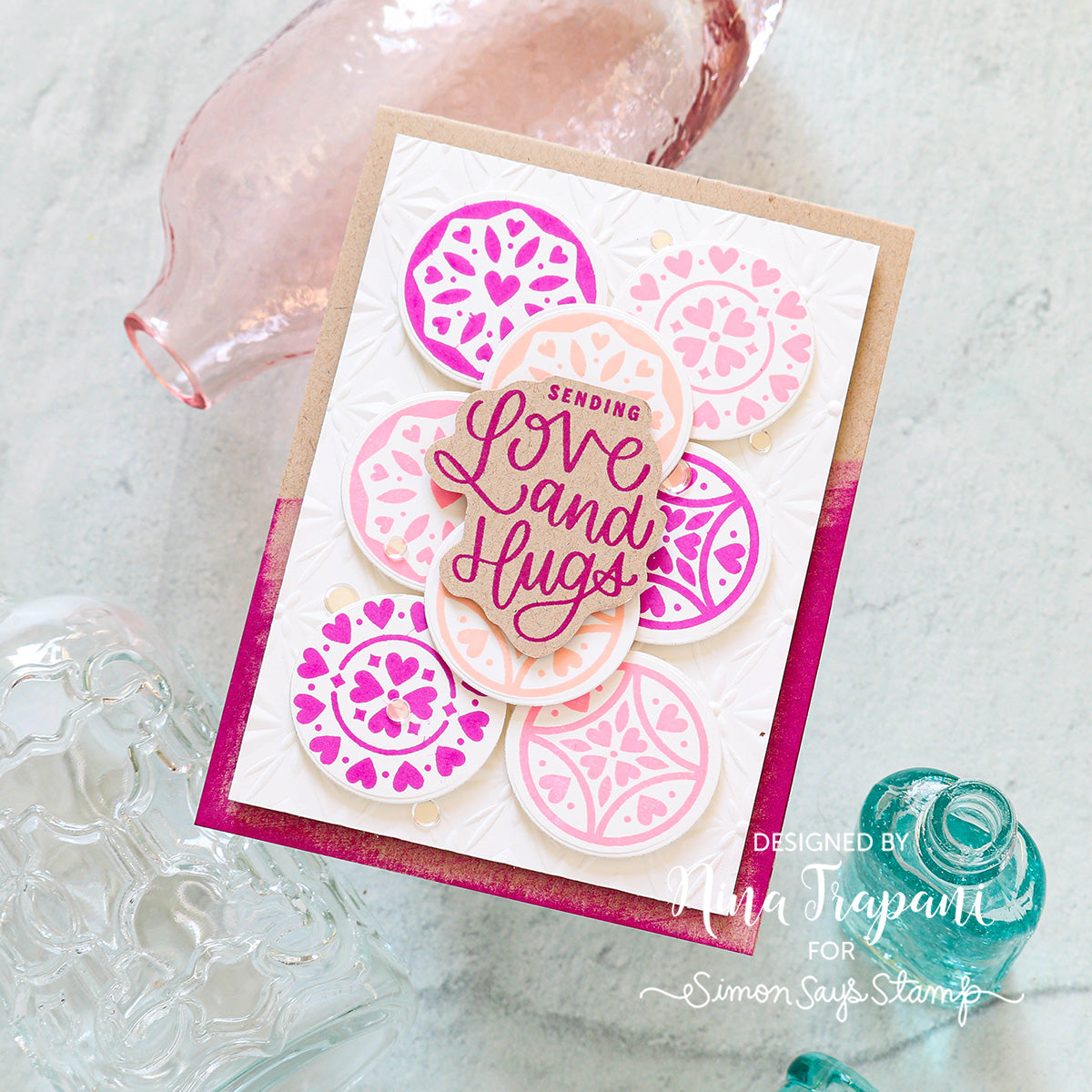 Elevate your crafting with the Simon Says Stamp Heart Mosaics stamp and circle die set. The versatile stamp set creates squares, circles, and a border in a mosaic tile style adorned with charming heart motifs, and the die allows you to cut out the three circular tiles.