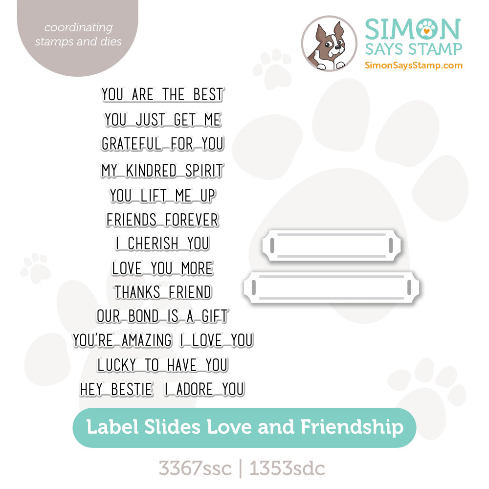The Simon Says Stamp Label Slides Love and Friendship stamps and die set is designed for clean, versatile greetings with a modern touch. Sized to fit perfectly on the Label Slides dies, the sentiments feature a simple, easy-to-read font that makes them just as useful across a wide range of projects.
