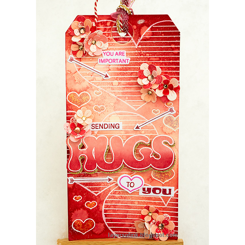The Simon Says Stamp Love Letter stamp and die set brings retro charm to your crafting projects with its groovy, puffy font featuring the bold words "Love" and "Hugs." This versatile set also includes delightful hearts and postage-themed images, perfect for creating cards and tags that feel like a warm embrace. The dies cut out all of the images and sentiments.