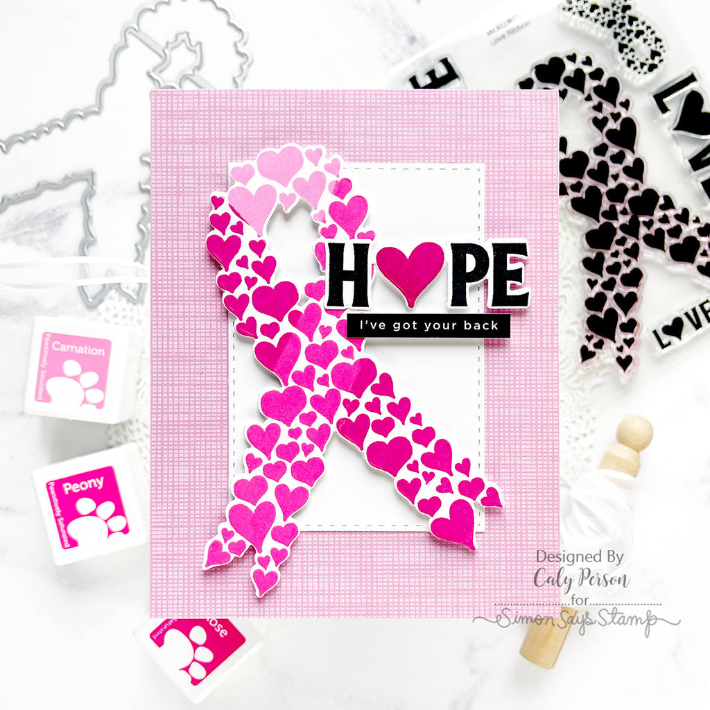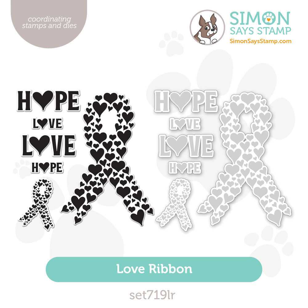 Introducing the Simon Says Stamp Love Ribbon stamp and die set—a heartfelt collection designed to spread awareness and love. This set includes both large and small awareness ribbons adorned with delicate heart patterns, allowing you to show your support and affection for those who are suffering with cancer or other diseases in a creative way.