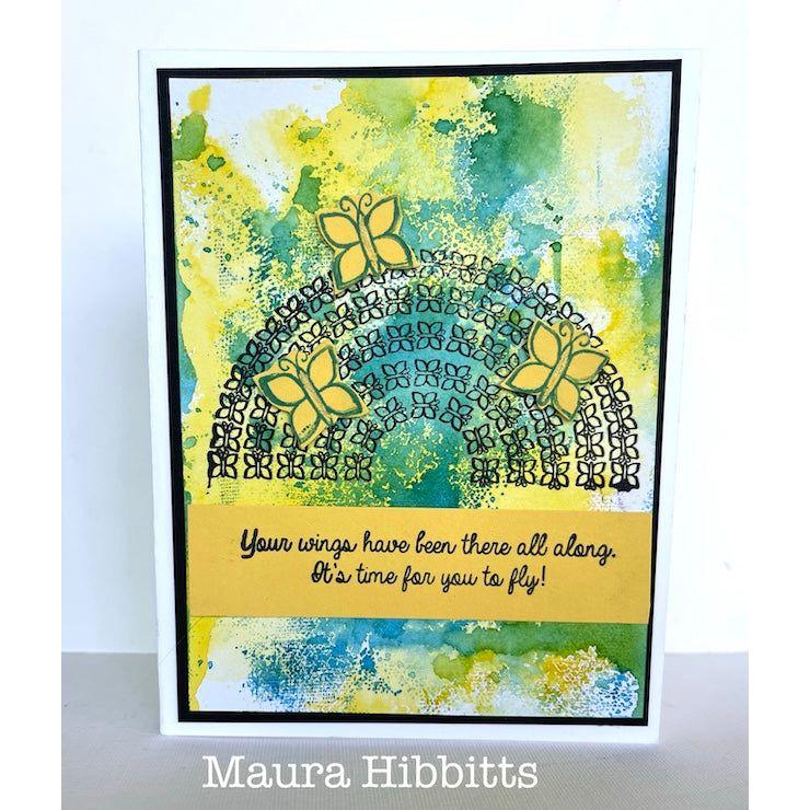 Featuring a captivating rainbow design crafted from intricate butterfly images, along with additional butterfly stamps and encouraging sentiments, this set is perfect for adding a touch of joy to your projects. Sentiments include: