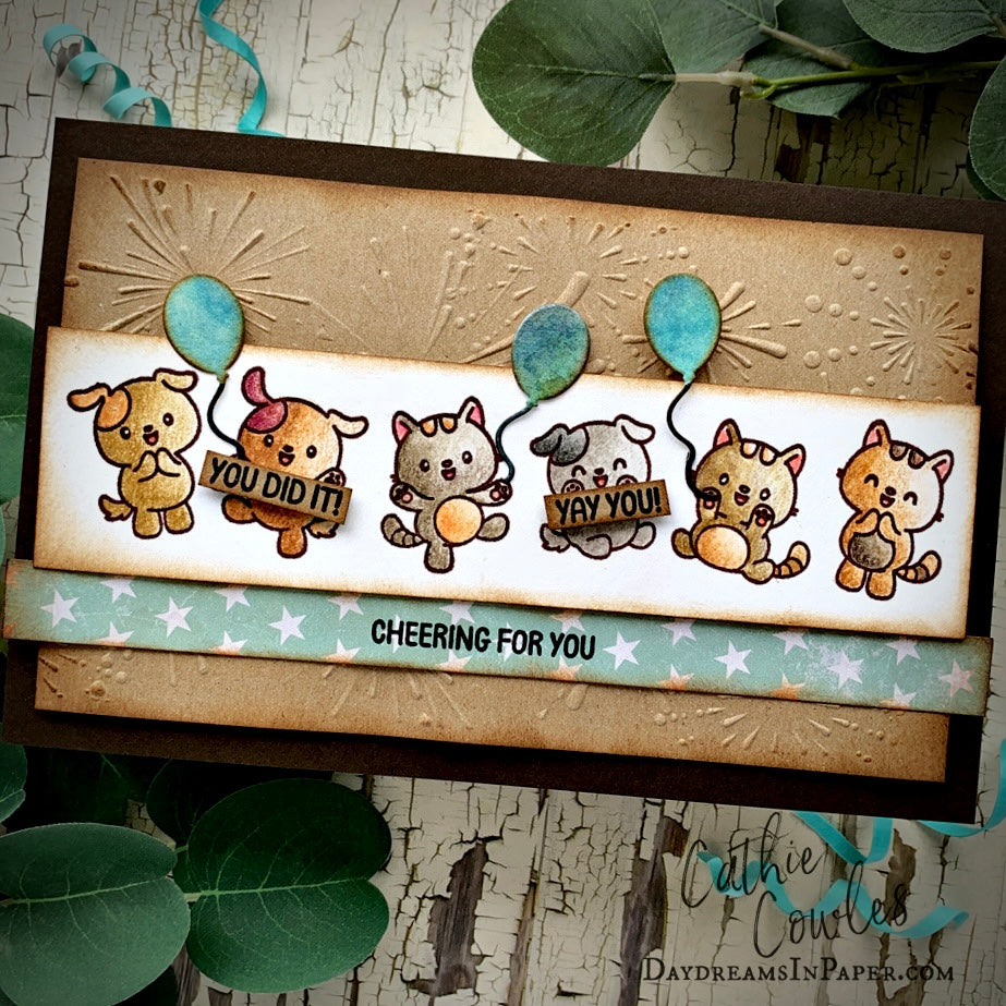 The dies cut out all of the cuddly images. Whether you're crafting for a graduation, promotion, or simply celebrating a job well done, the included sentiments offer the perfect way to send your applause.