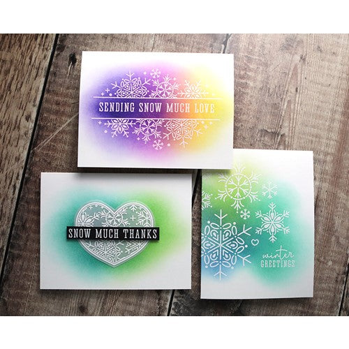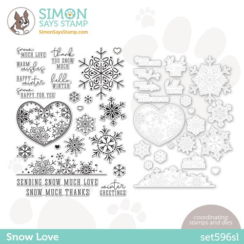 In many places in the world, Valentine's Day occurs in the winter, so this fabulous set combines hearts AND snowflakes! And of course, we celebrate love year 'round! Stamp a flurry-filled heart, a snowflake border, and individual snowflakes. Add greetings that proclaim affection, some with cute snow puns. With the coordinating dies, cut out the images and sentiments, too!