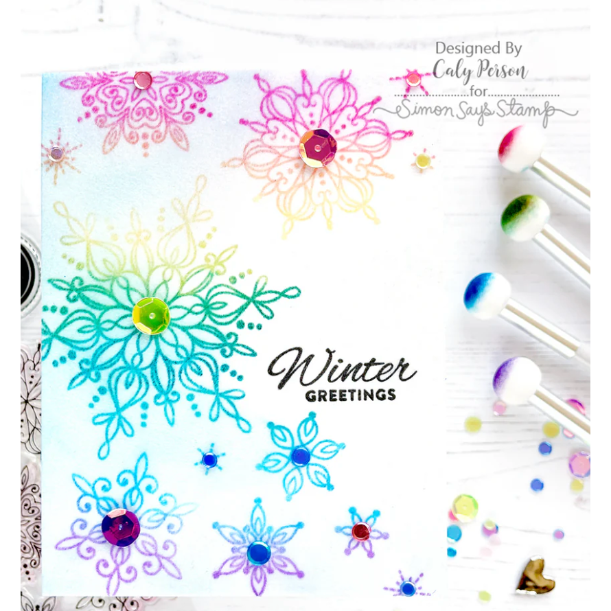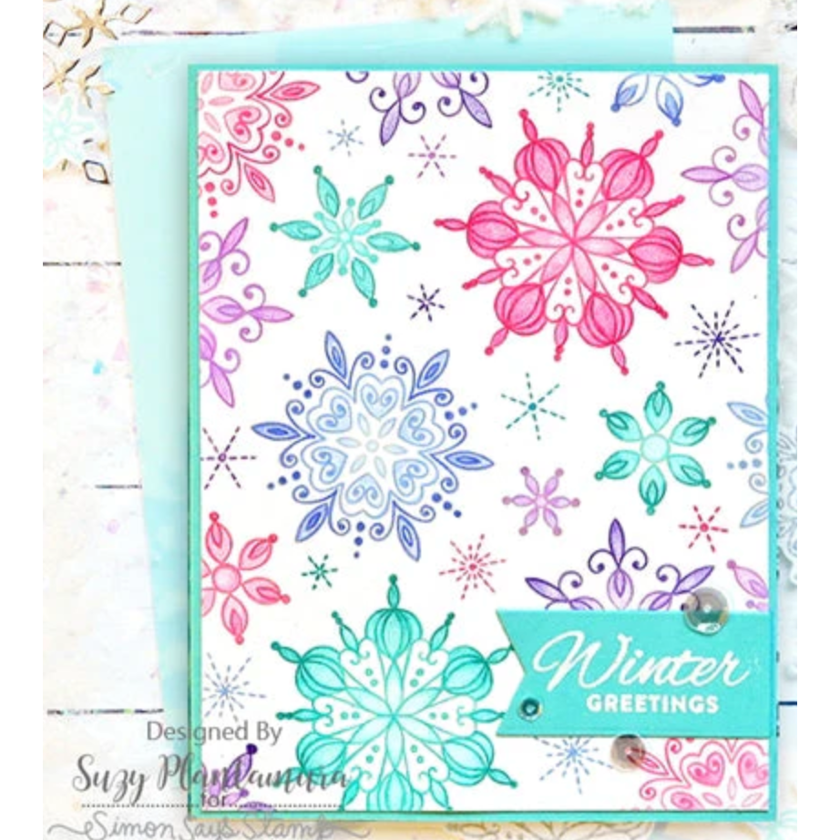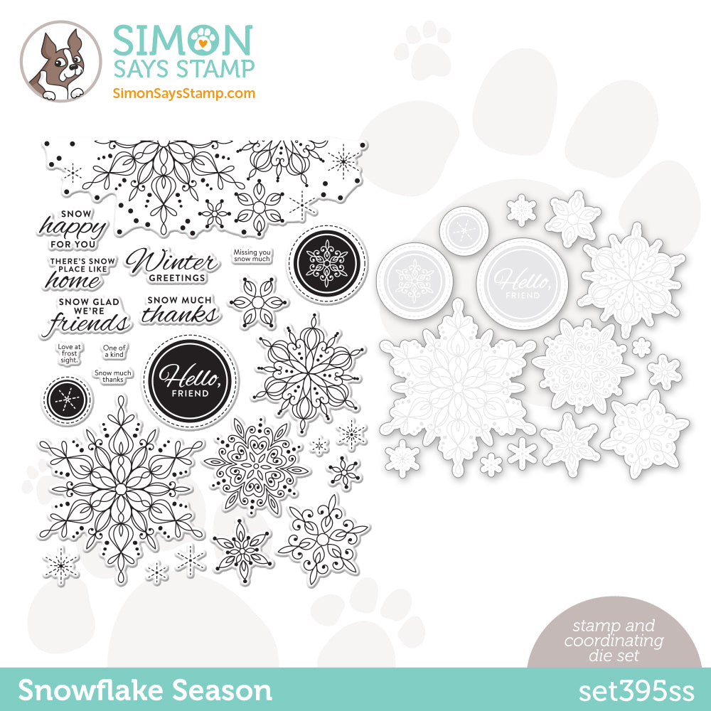 Simon Says Stamp dies are usable in nearly every machine on the market. Use wafer dies on cardstock, felt, fabric, even shrink plastic! You can use wafer thin dies to cut, stencil, emboss and create! Simon Says Stamp clear stamps are high quality photopolymer and made in the USA. This stamp and die set includes the 6 x 8 inch stamp set Snowflake Season (sss202183c) and the Snowflake Season coordinating wafer die set (sssd112207c).