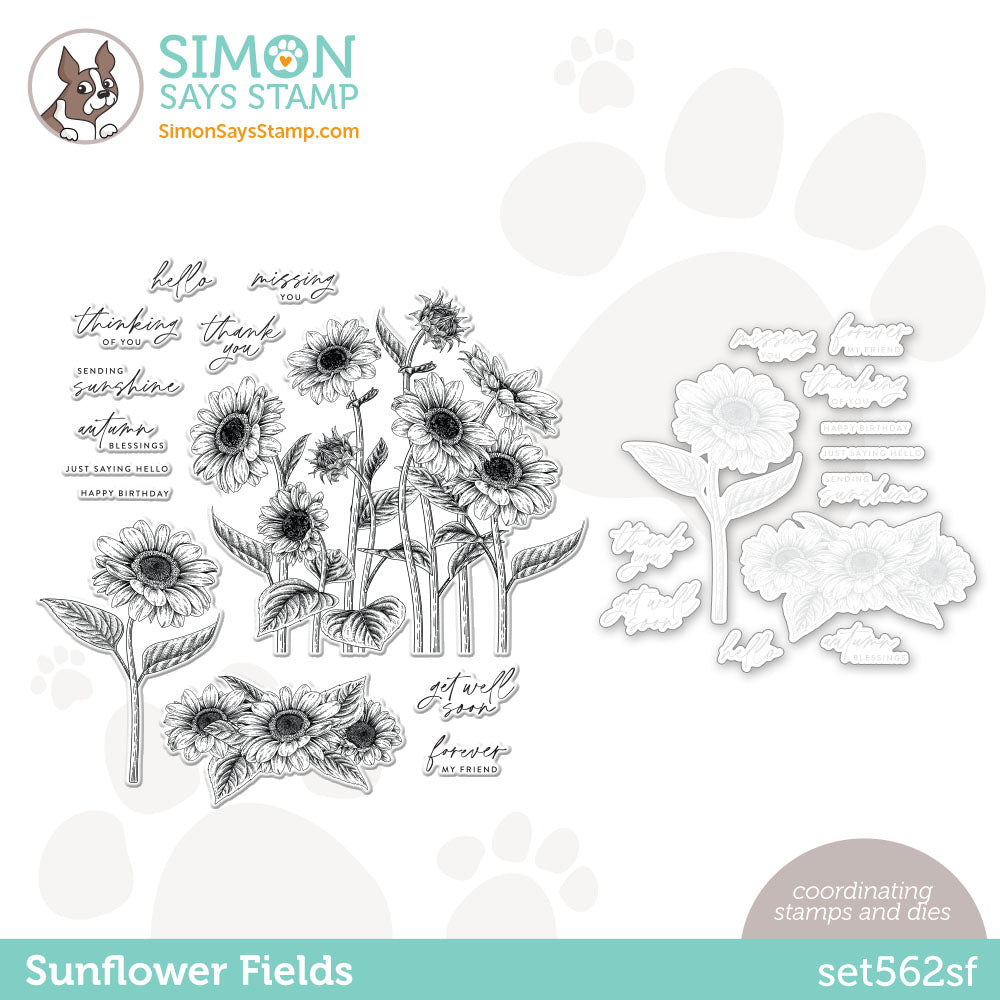 Simon Says Stamp dies are usable in nearly every machine on the market. Use wafer dies on cardstock, felt, fabric, even shrink plastic! You can use wafer thin dies to cut, stencil, emboss and create! Simon Says Stamp clear stamps are high quality photopolymer and made in the USA. This stamp and die set includes the 6 x 8 inch stamp set Sunflower Fields (sss202511c) and the Sunflower Fields coordinating wafer die set (sssd112612c).